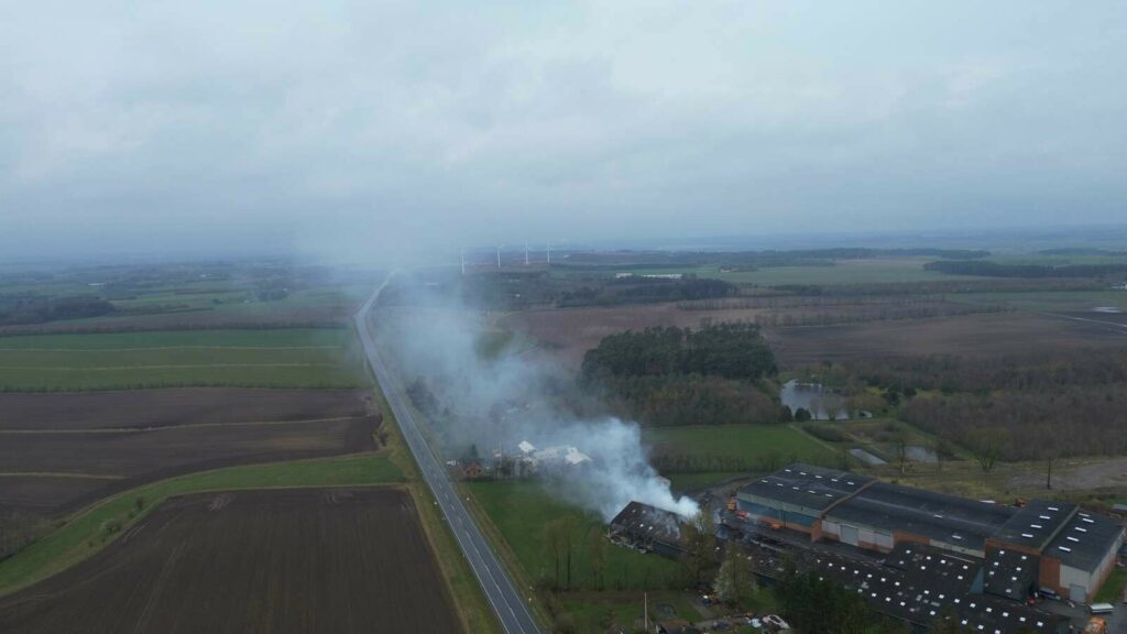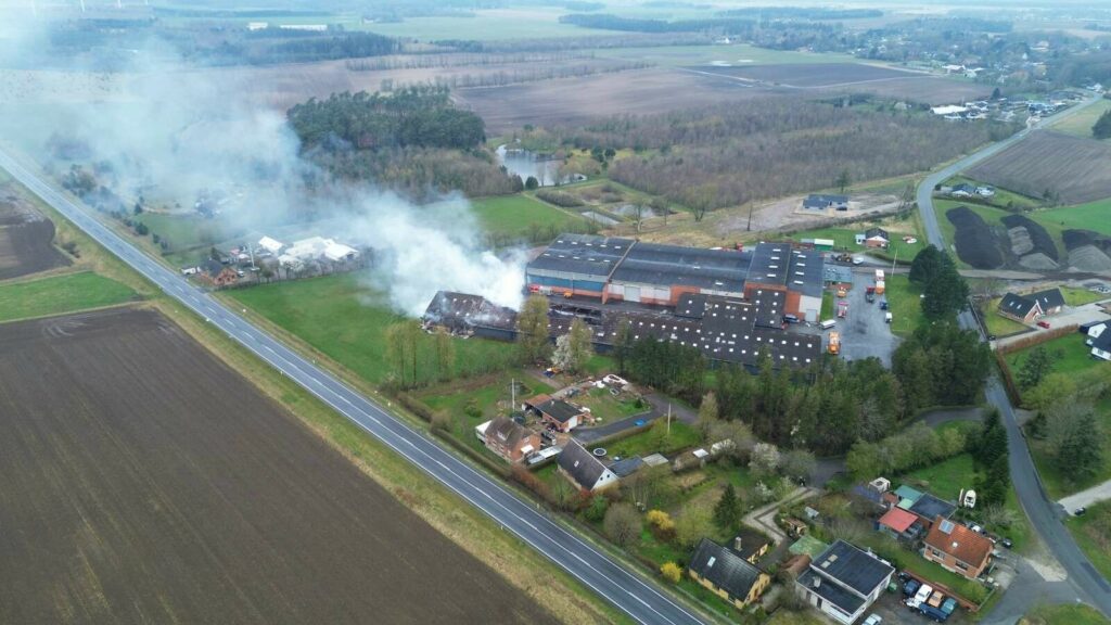 Det betyder, at røg og lugt for branden kan brede sig fra syd og ind over beboelser i Assentoft.