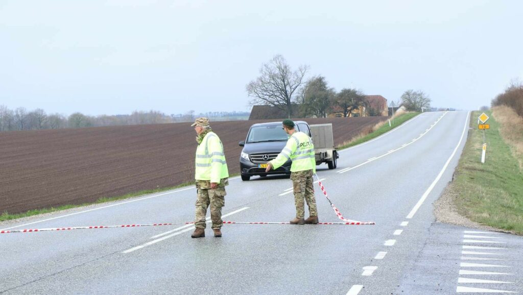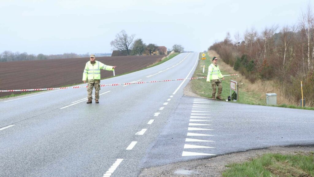 ‘Røg, spærret i begge retninger, brandmænd dirigerer trafikken, omkørsel organiseres,’ lyder det.