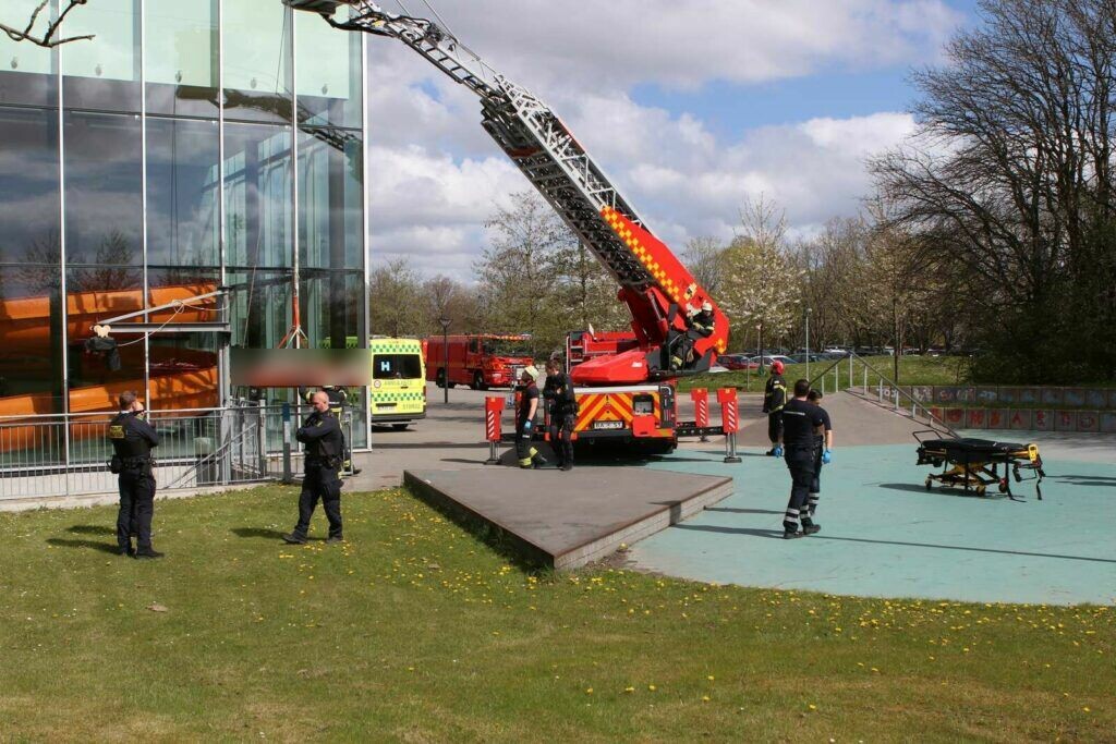 “Vi modtog anmeldelsen kl. 10.28. Der er tale om en mand, der faldt ned fra en stige. Han er kørt på skadestuen, men han er ikke alvorligt tilskadekommen,” fortæller vagtchef hos Københavns Vestegns Politi, David Borchersen, til presse-fotos.dk