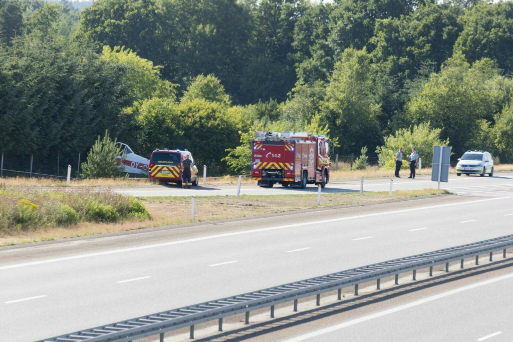 Lørdag formiddag holder et havareret fly ved Midtjyske Motorvej. Og synet af flyet skaber farlige situationer i trafikken.