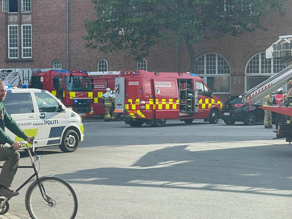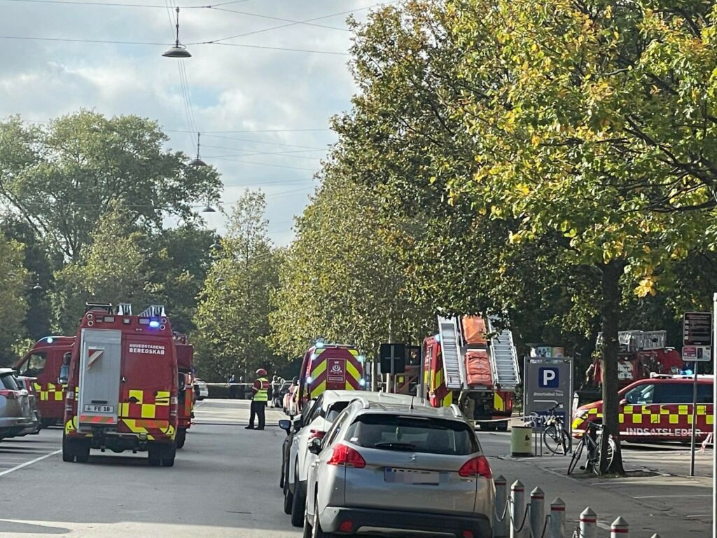 “Vi er netop nu til stede ved en brand på Gunnar Nu Hansens Plads på Østerbro. Ilden er slukket, men det ryger fortsat fra bygningen, og der er opsat midlertidige vejafspærringer i området. En person er kørt til skadestuen til observation for røgforgiftning”.