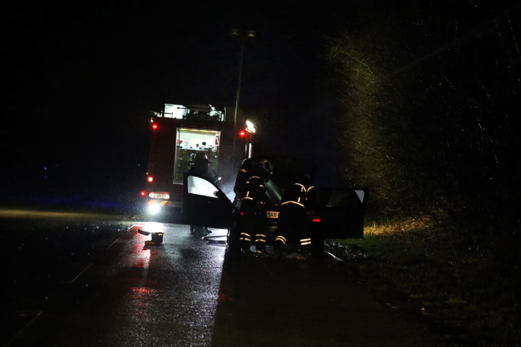 En bil er søndag aften brudt I brand på en rasteplads ved Rute 25 i Kolding.