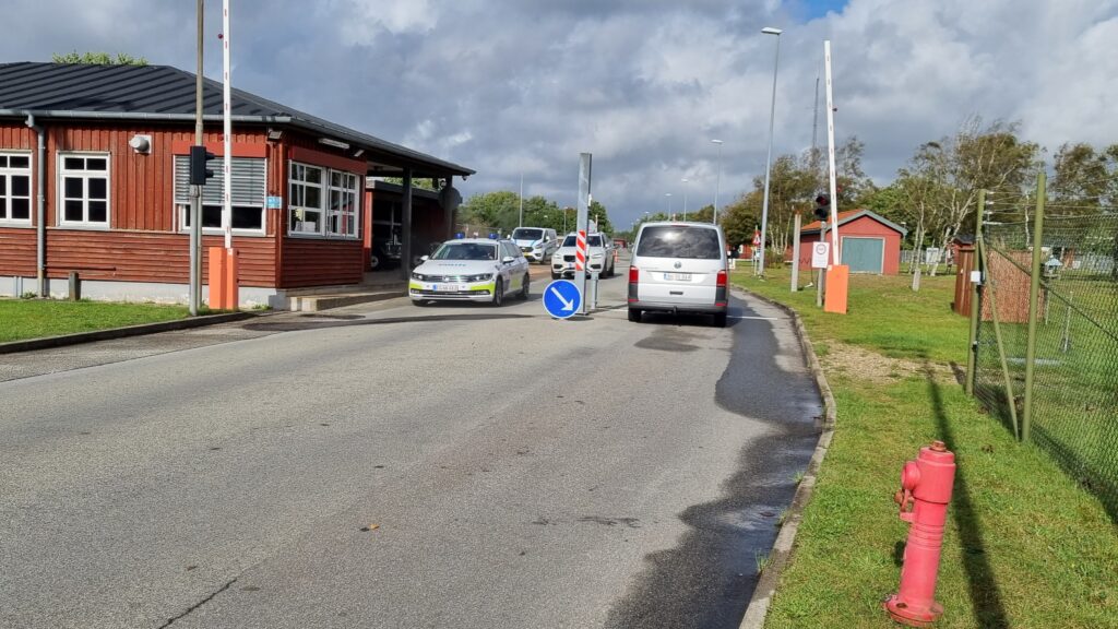 En lagerbygning fyldt med køretøjer på Oksbøl Kaserne står i flammer mandag eftermiddag.