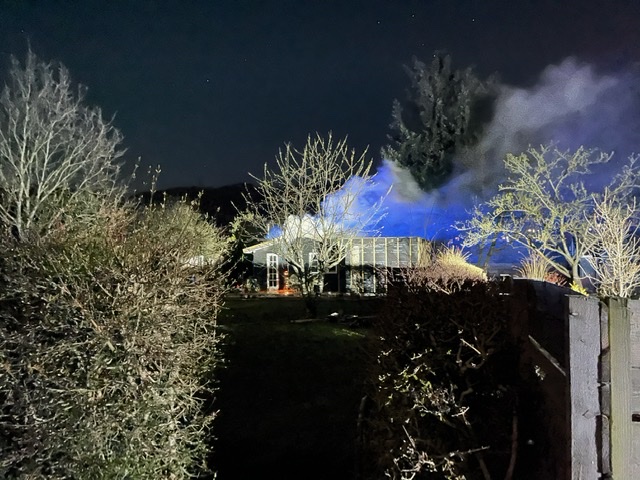 Ved ankomst var der flammer fra taget af huset, men brandvæsenet havde svært at komme frem i terrænet, hvilket forsinkede slukningsindsatsen en smule.