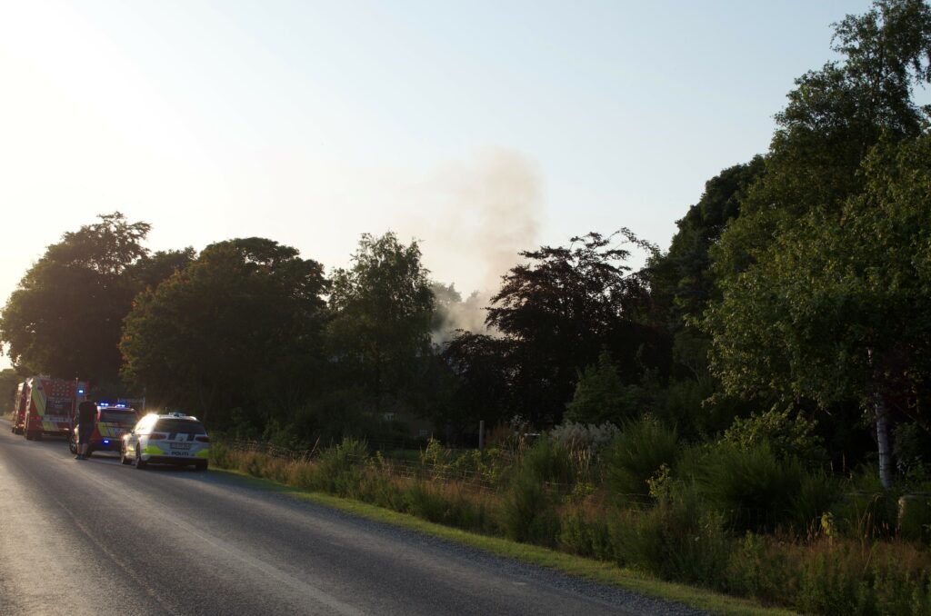 “Ribe / Hjortlund: Vi er på vej til en brand i en gård på Hjortlundvej 175. Hold til højre for udrykningskøretøjer på vej til stedet,” skrev Sydjyllands Politi først på aftenen på Twitter.