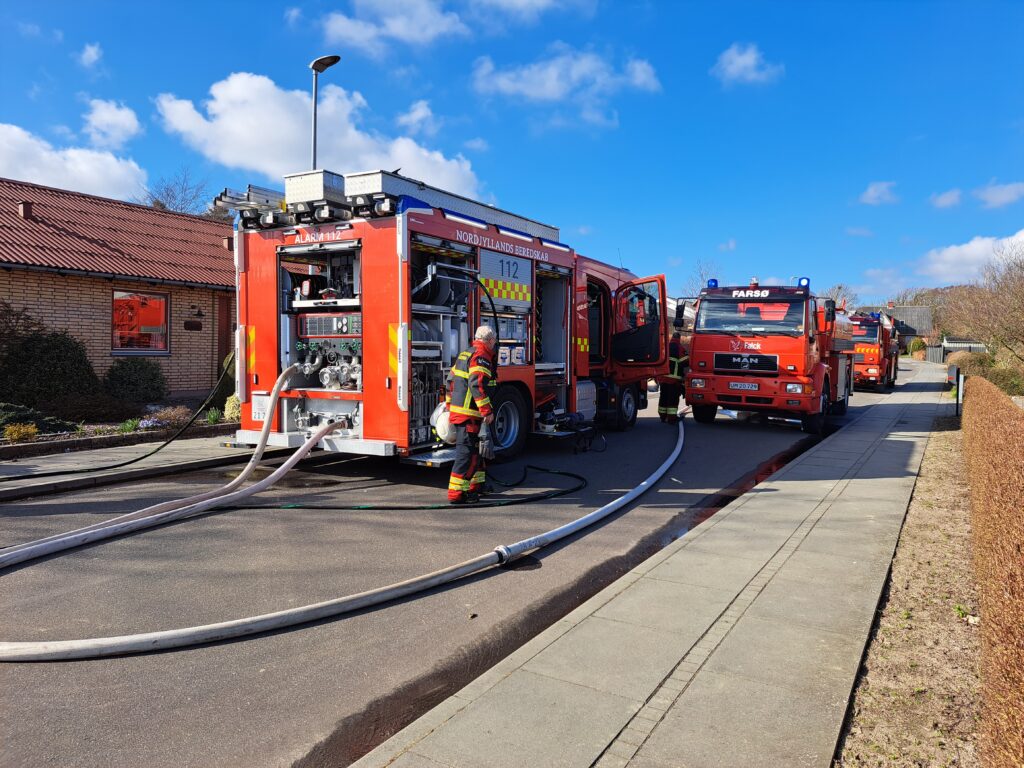 ‘Dog er der ild i naturgas ledningen ind til huset. Vi venter på Gasselskabet kommer og hjælper med og lukke for gasforsyningen,’ oplyste Nordjyllands Beredskab i den forbindelse.