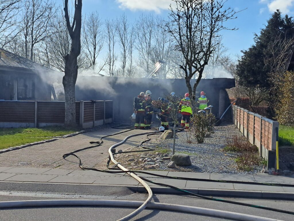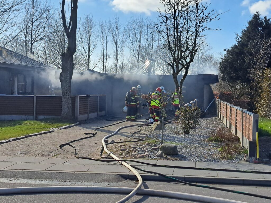 Her kunne man hurtigt konstatere, at flammerne fra garagen havde fået fat i villaen. Samtidig var der også fare for et nabohus.