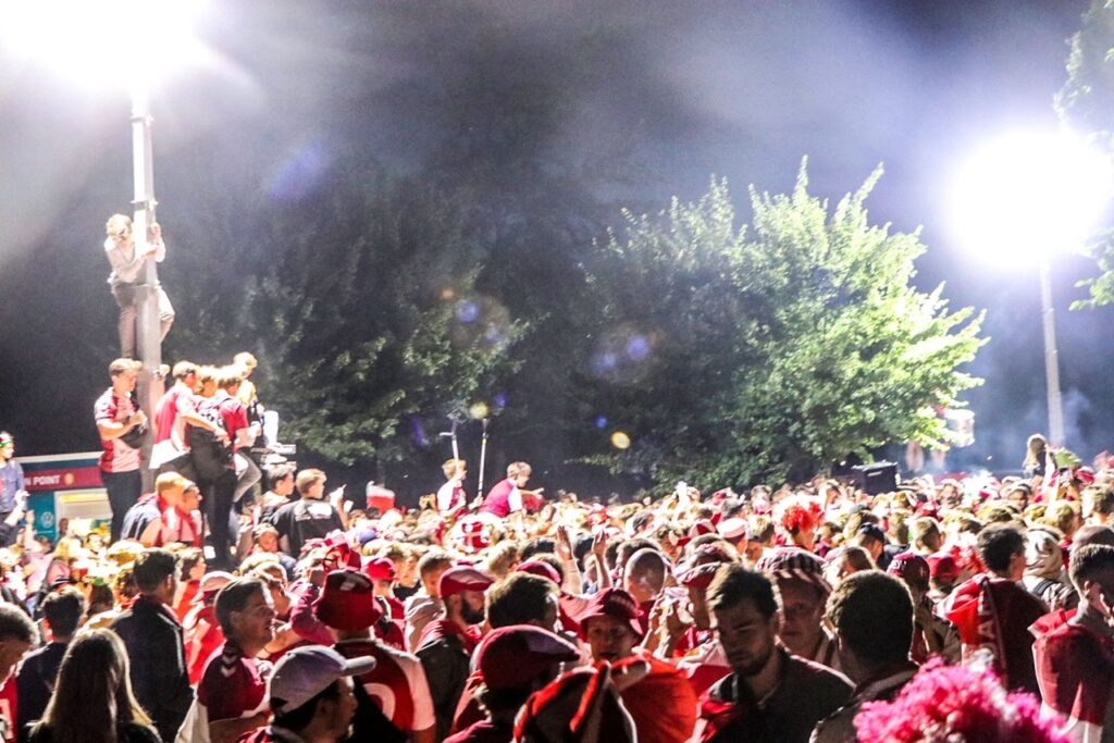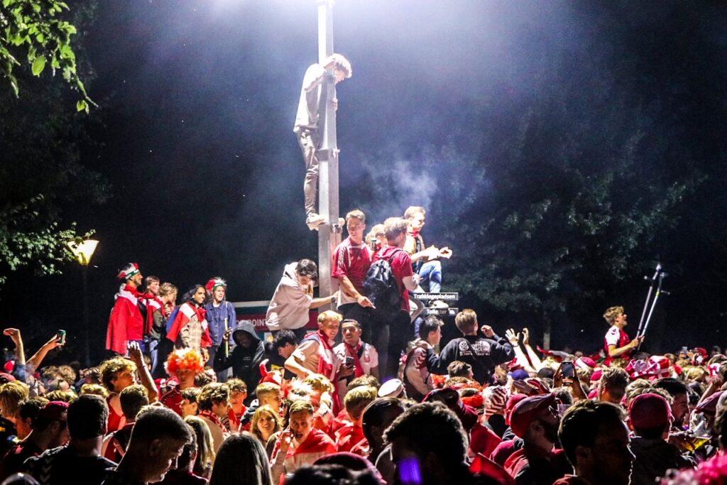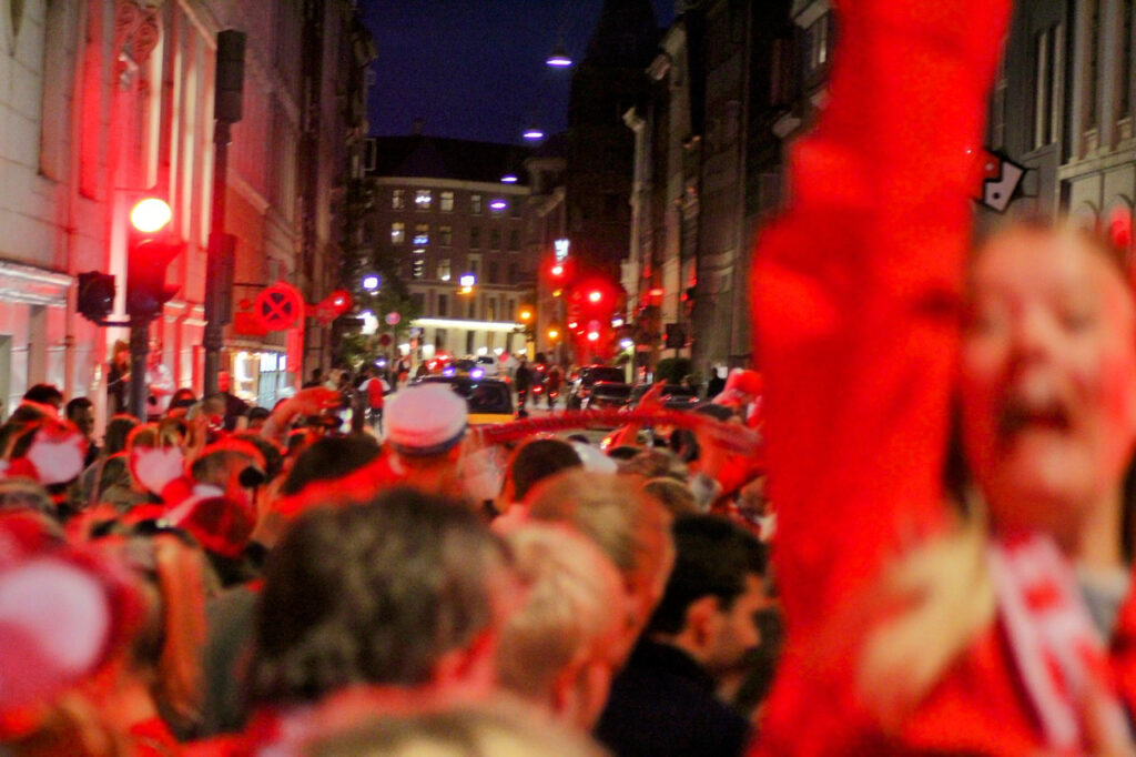 København er omdannet til en stor fest af dansende, syngende og glade roligans.