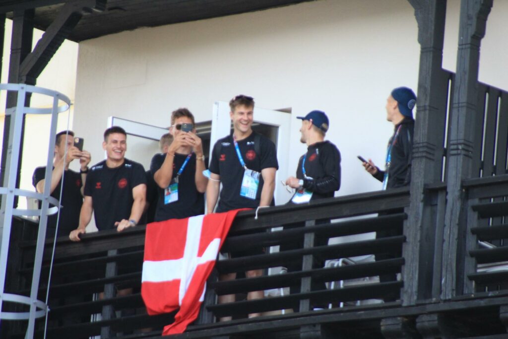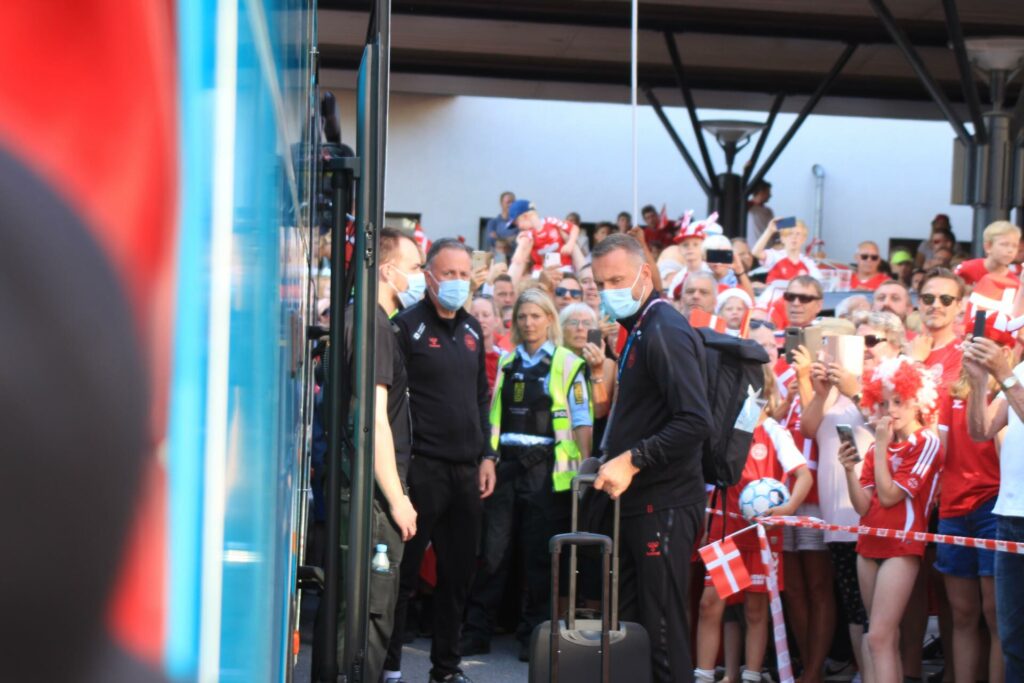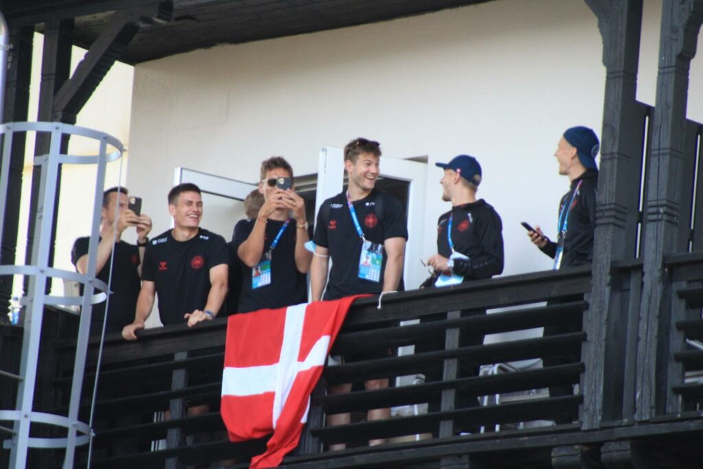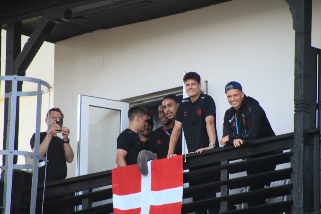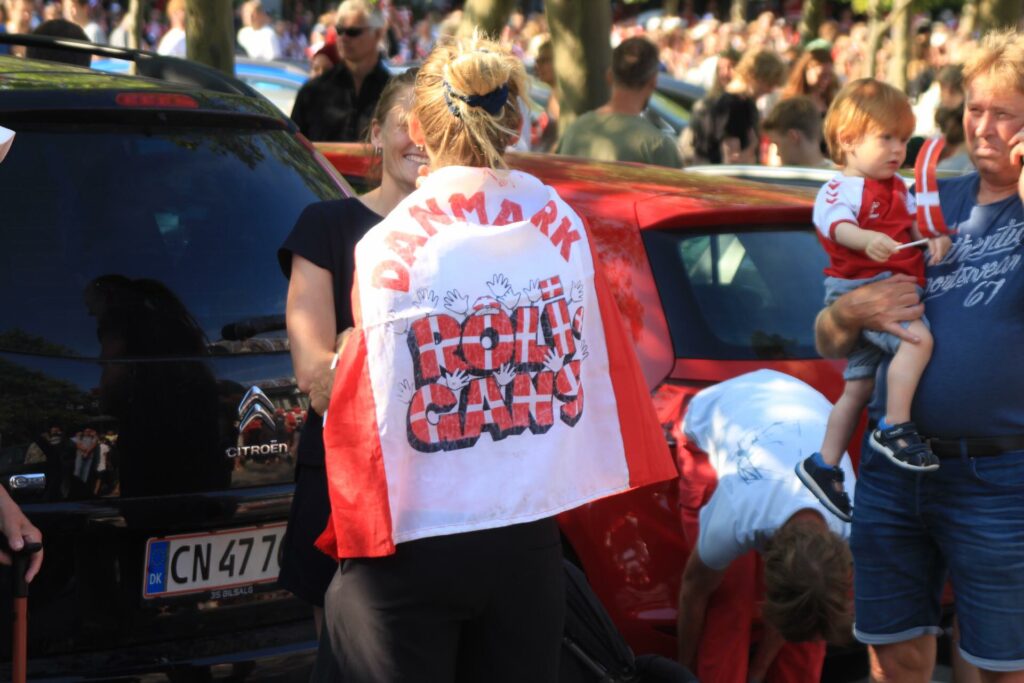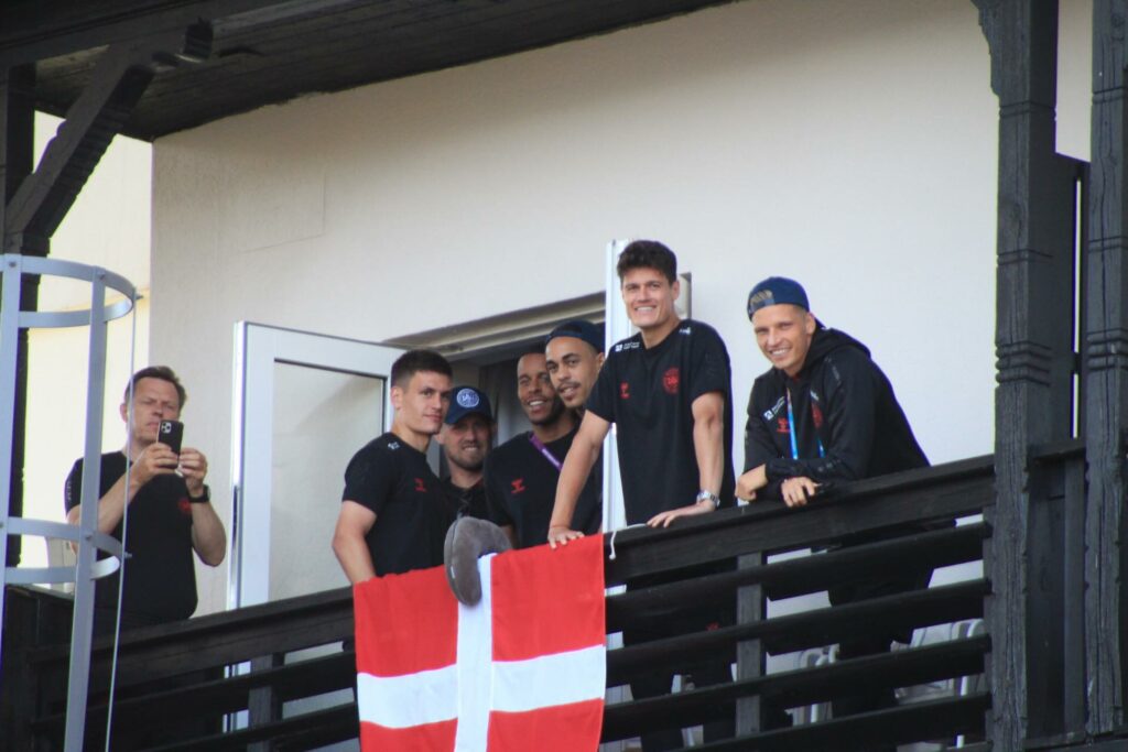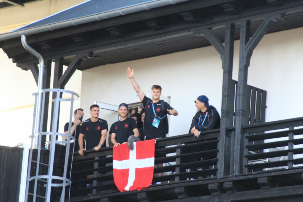 Det danske landshold ankom søndag eftermiddag i Helsingør efter gårdagens kamp, hvor de tog sejren med hjem, og gik videre til semifinalen. I Helsingør blev de modtaget med flag og jublende danske fans.