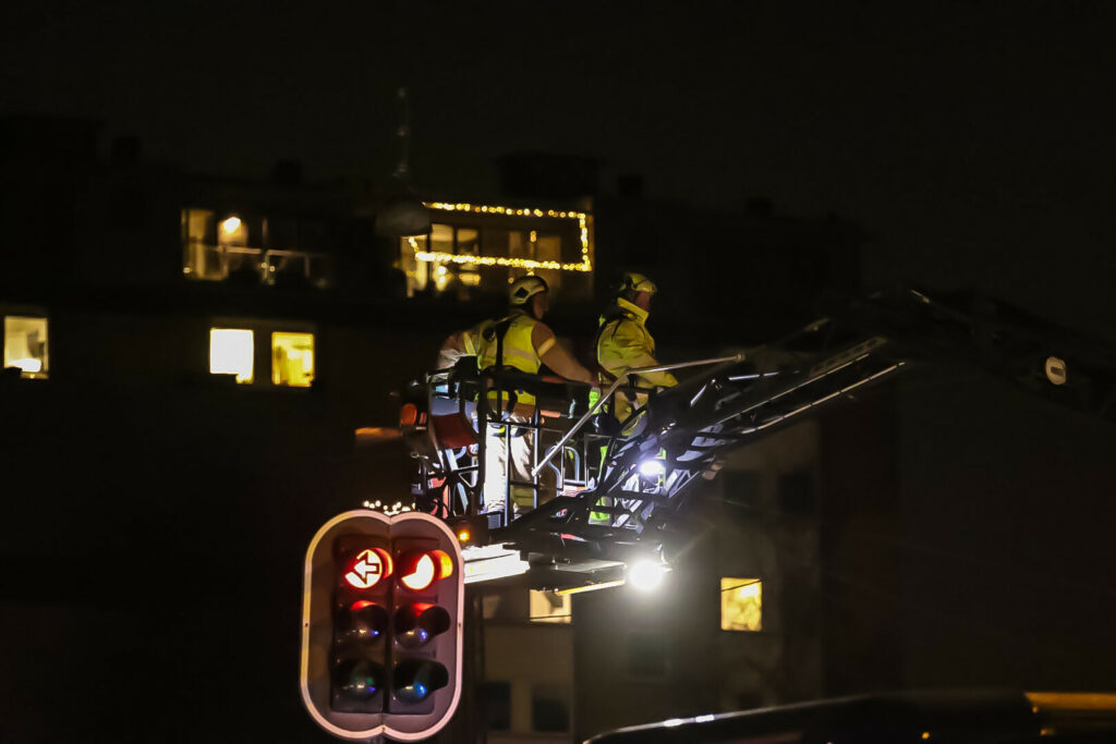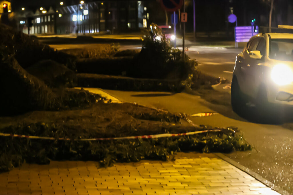 Brandvæsnet var til stede, for at assistere Aarhus kommune med nogle nedfaldne ledninger grundet den nedfaldne plante.