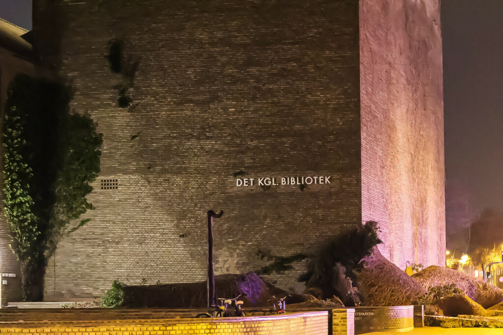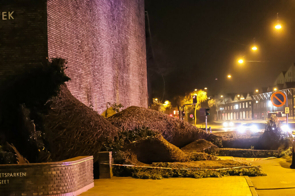 En kæmpe stor klatreplante, er blæst af Det Kongelige Bibliotek på Vester Ringgade i Aarhus C.