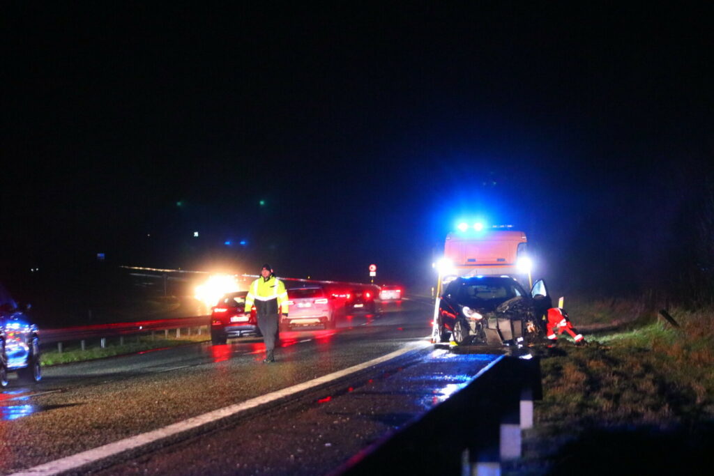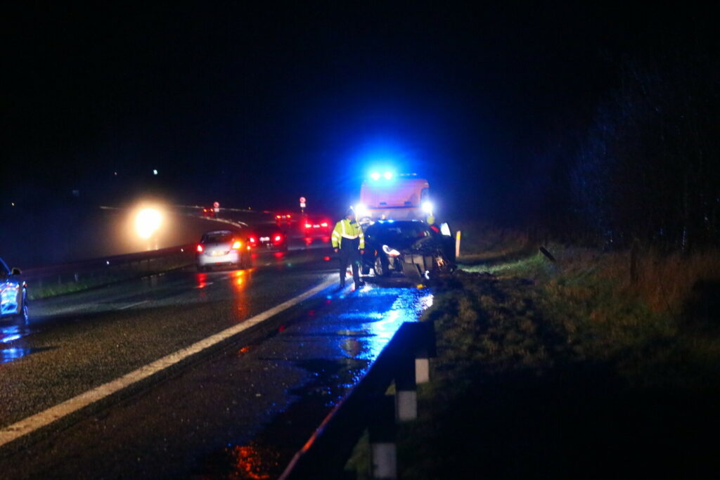 En bil er kørt ind i midterautoværnet i nordgående retning mellem afkørsel 69 og 68 ved Haderslev.