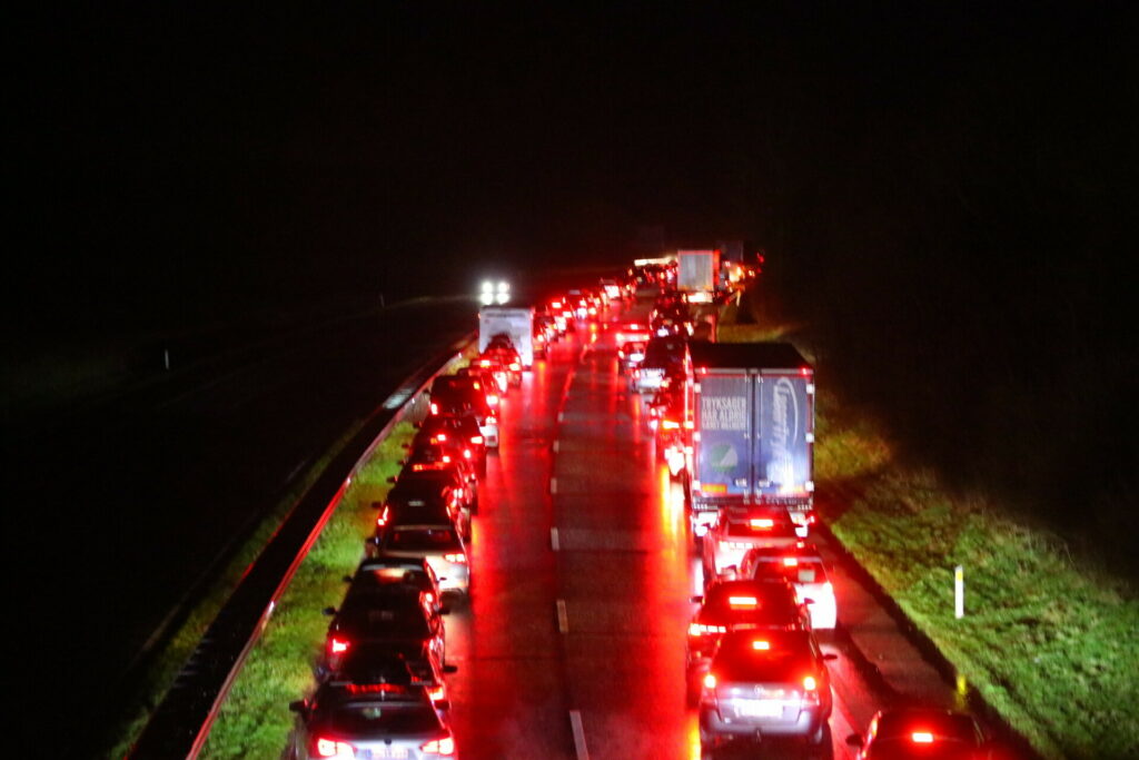 KÆMPE KØ: Færdselsuheld på Sønderjyskemotorvej