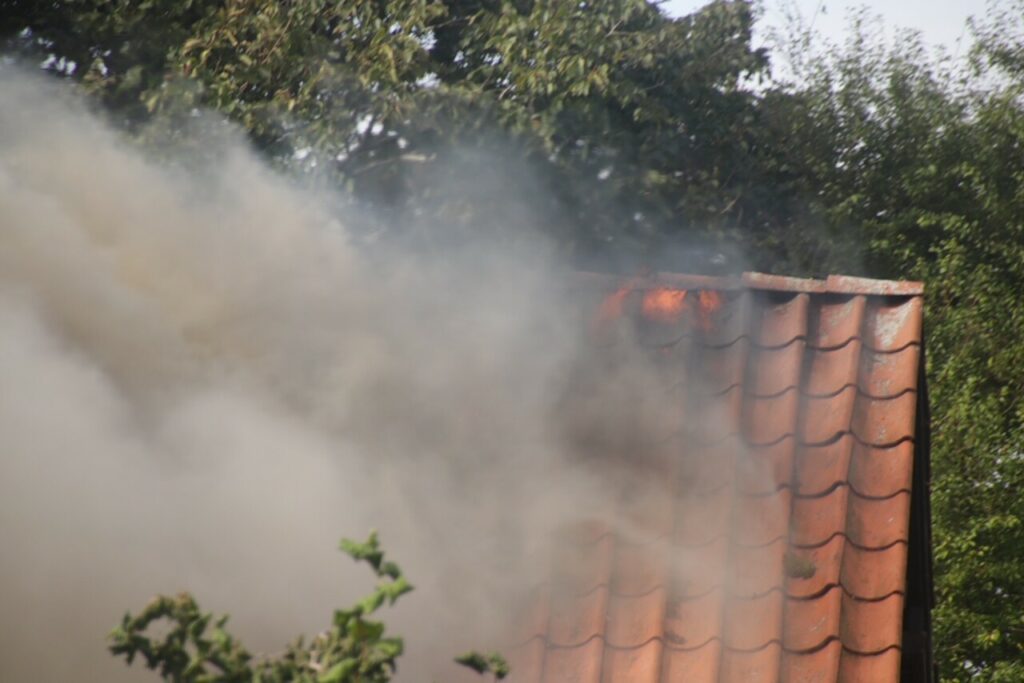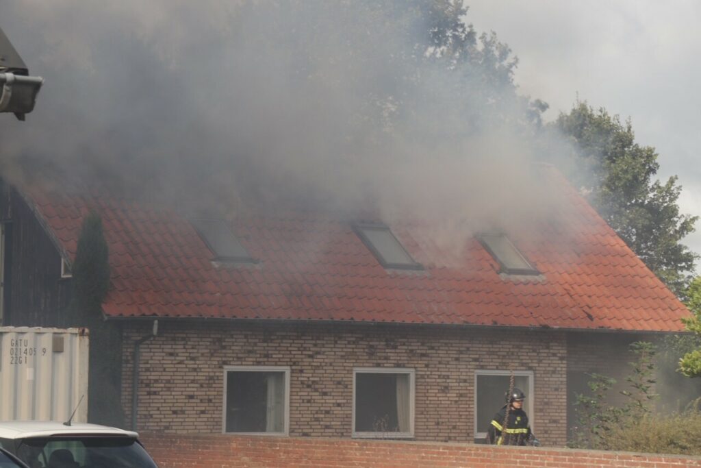 Store røgskyer og flammer kan ses ud af taget fra en gård på Snejbjergvej i Herning. Brandvæsnet er til stede med mindst tre brandbiler, der alle lige nu kæmper med at komme ind til branden gennem de kraftige skyer.