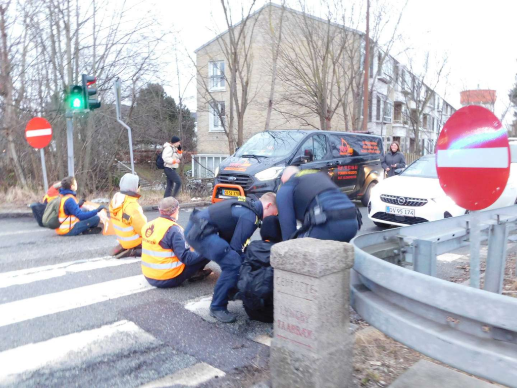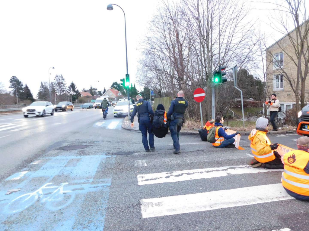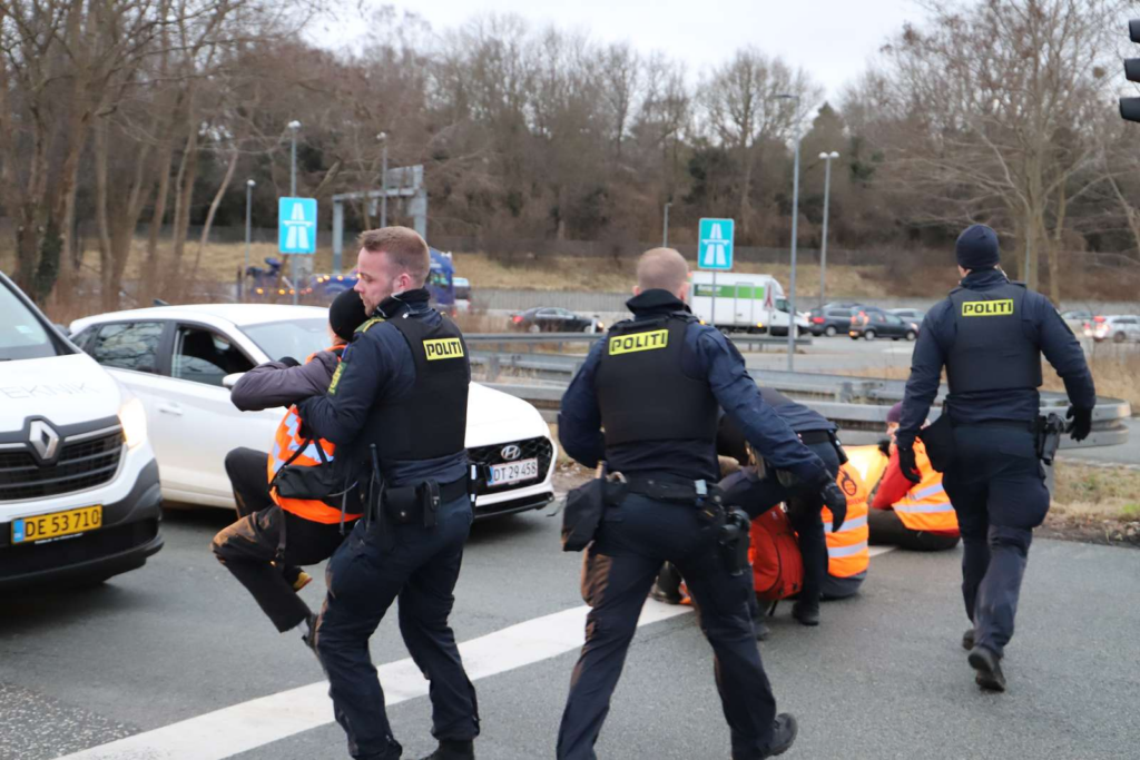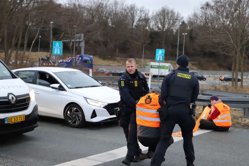 Nordsjællands Politi og Københavns Politi er senere ankommet til blokeringerne og er i gang med at bære aktivisterne væk fra vejen.