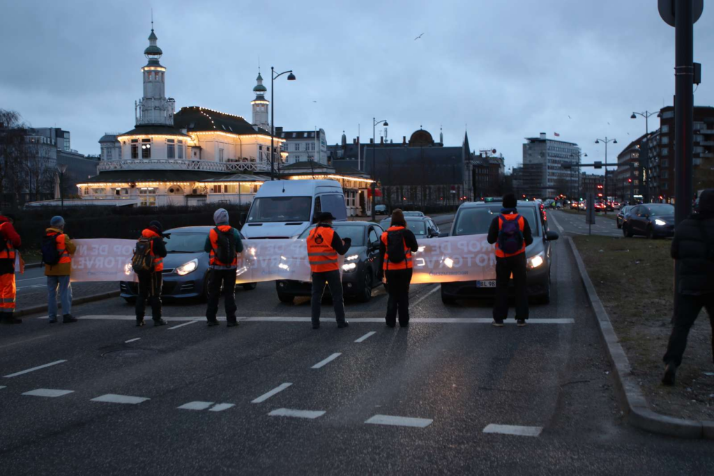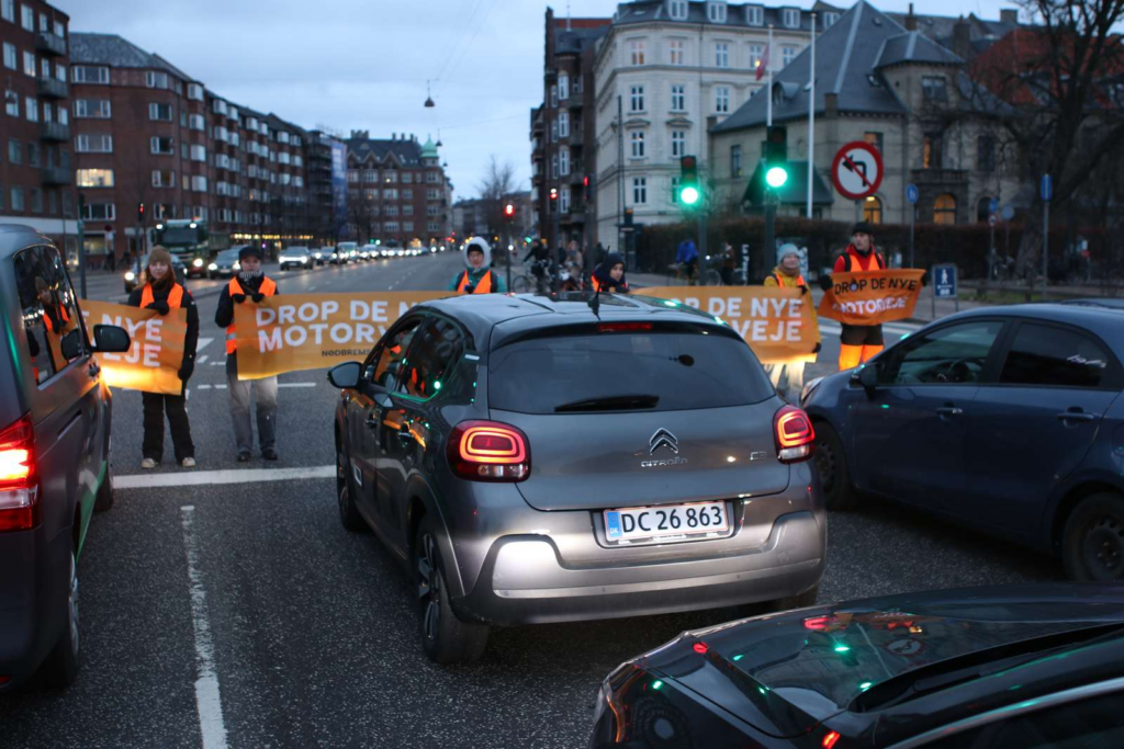 Endelige blokerer aktivisterne også motorvejsafkørslen langs Helsingørmotorvejen ved Jærgersborgvej også i Gentofte.