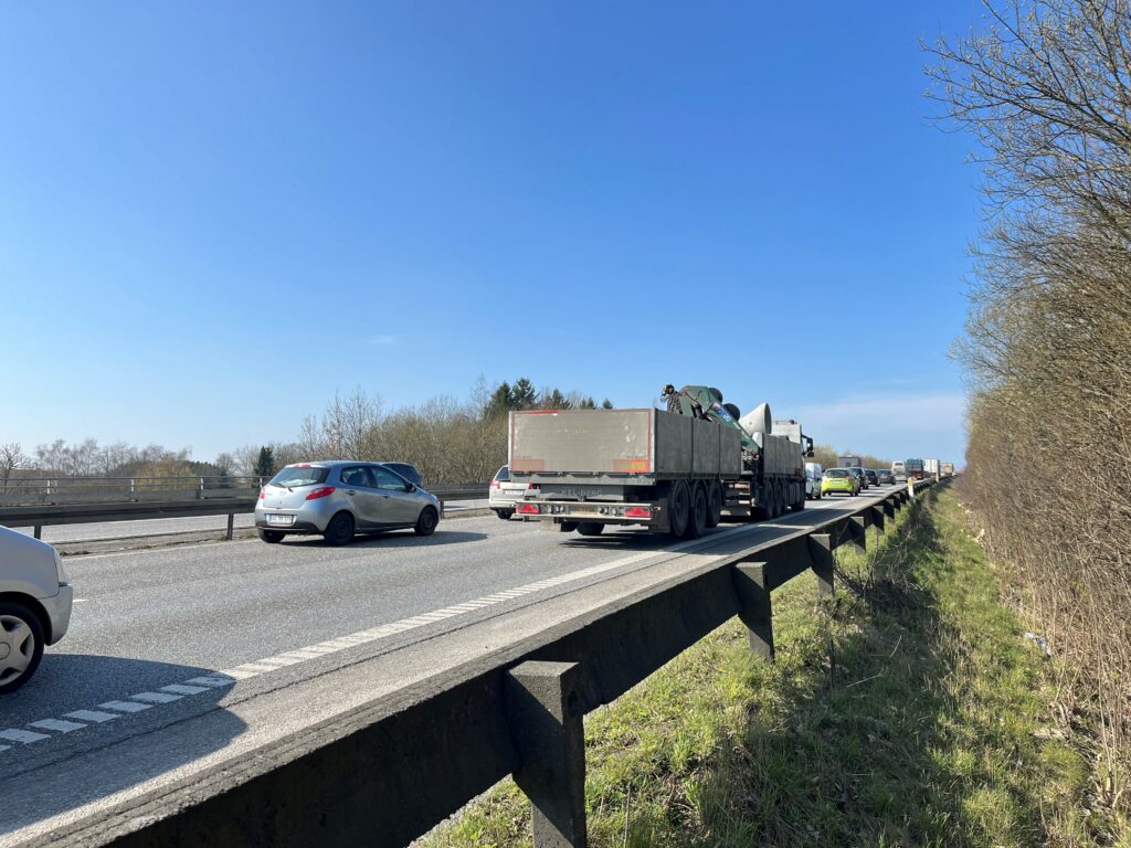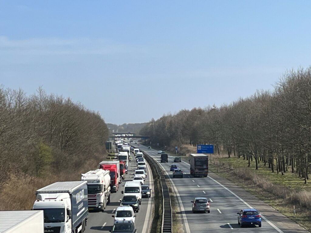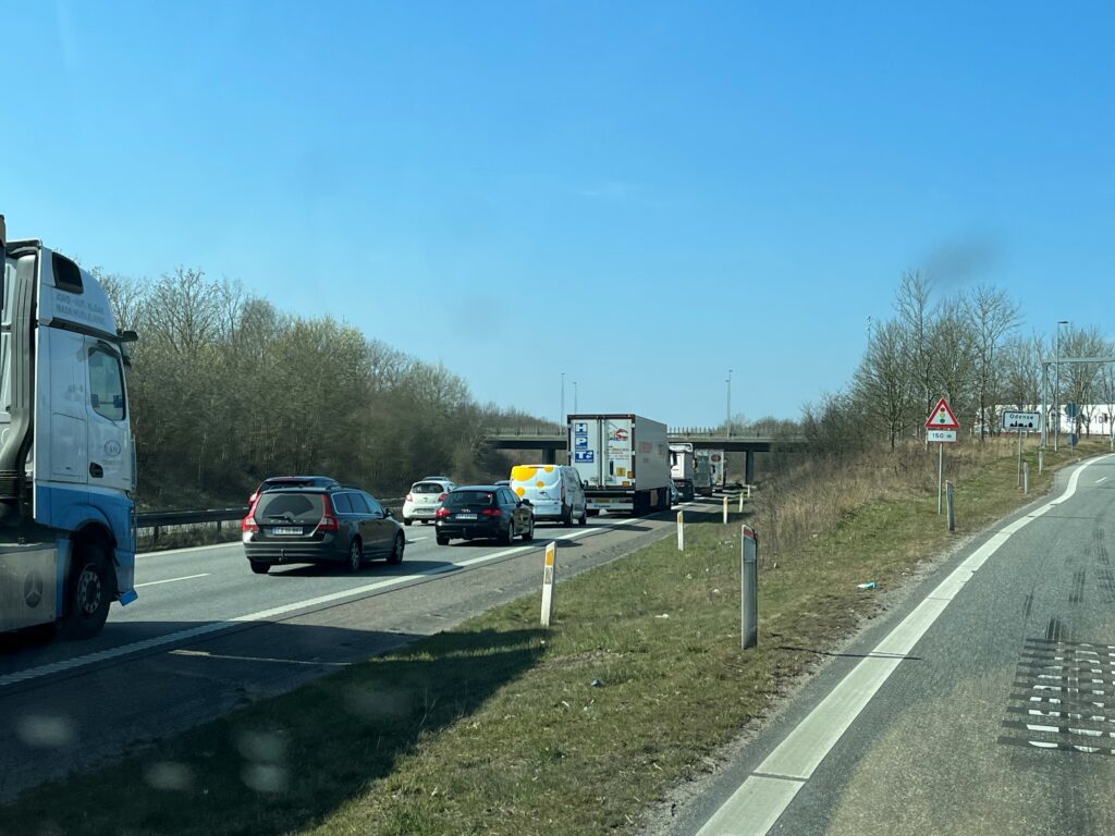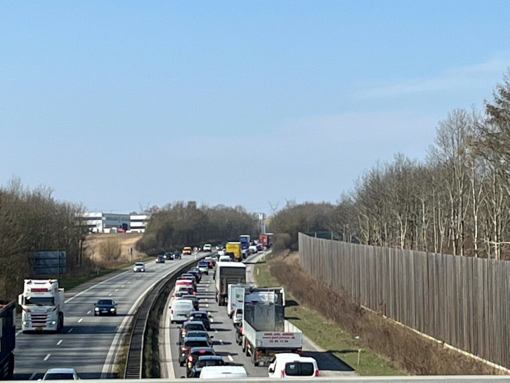 Uheldet har givet kø på motorvejen.