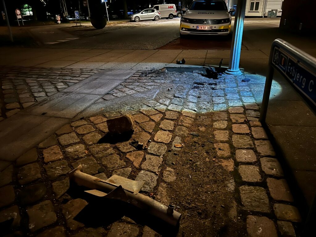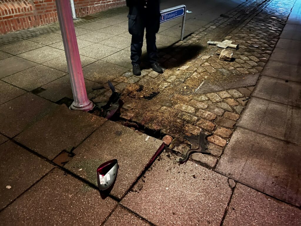 En bil påkørte blandt andet et skilt og en række andre ting i det indre Esbjerg, før den forlod stedet.