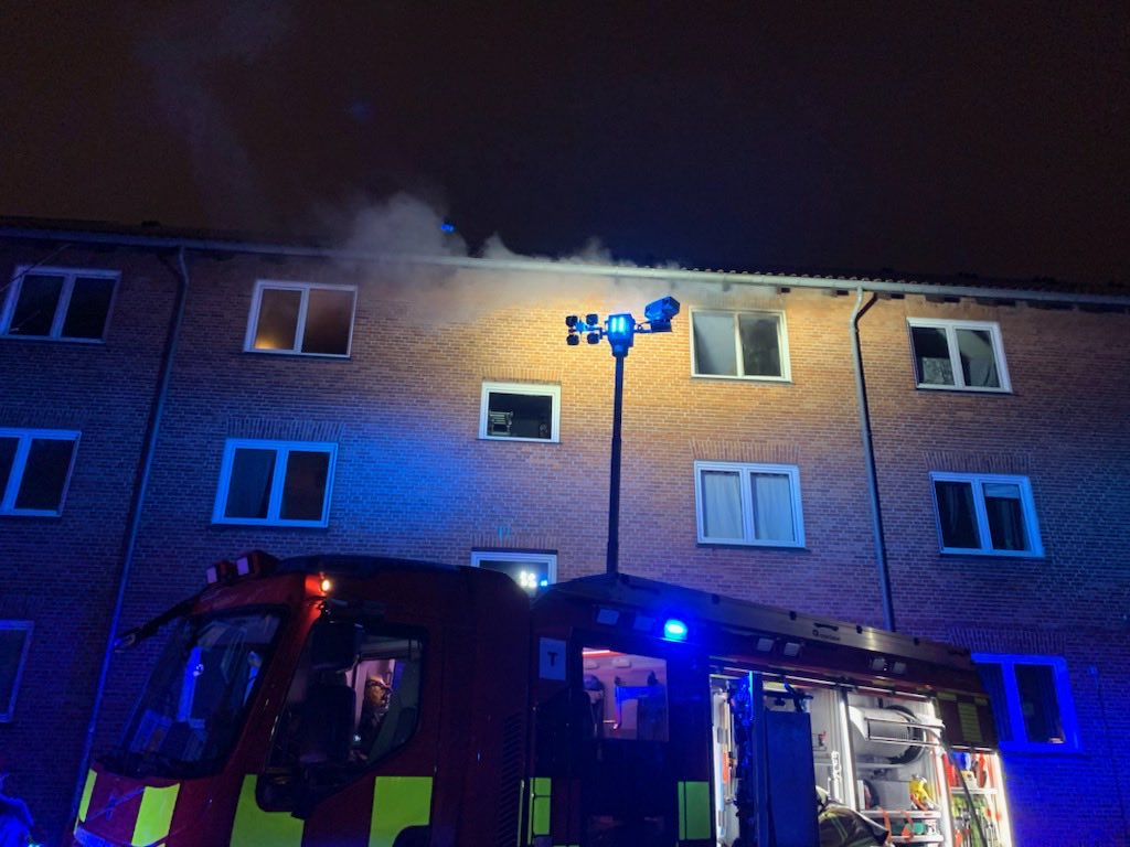 ‘Vi har slukket en kraftig brand i en 2. sals lejlighed på Glumsøvej,’ lød det fra Hovedstadens Beredskab på det sociale medie X, da branden var slukket kort efter klokken 22.00.