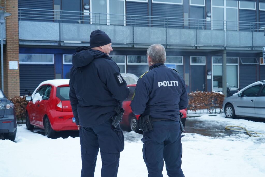 Flere udrykningskøretøjer er på Herredsvej i Århus V og brandvæsnet er i gang med at få styr på brand og røg.