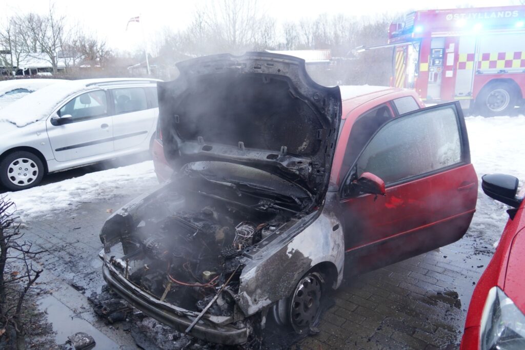 Der har ikke været spredning til andre biler og politiet skal nu undersøge, hvordan branden er opstået.