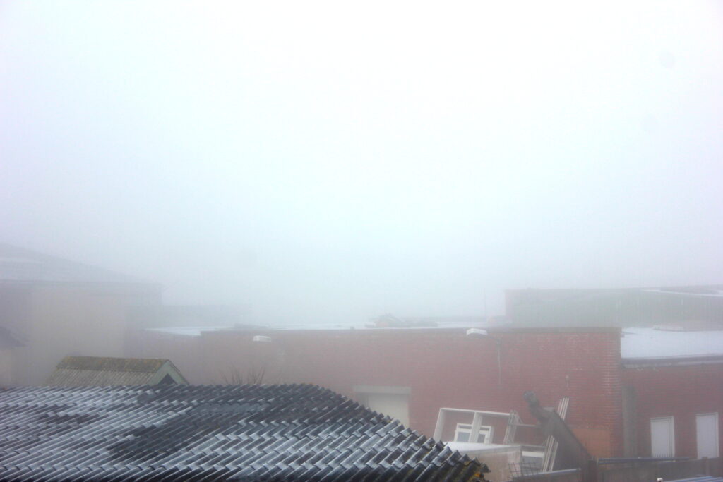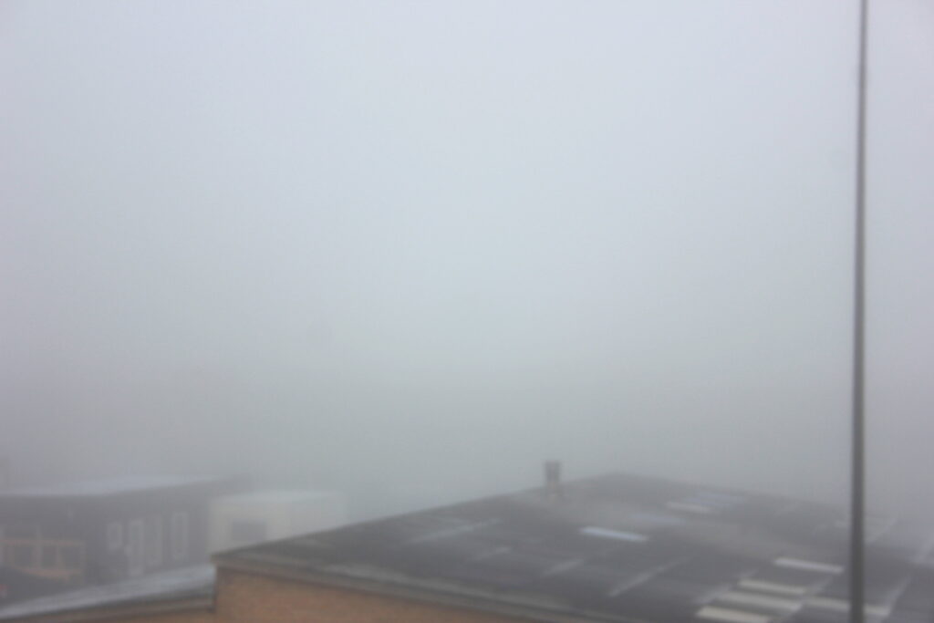 Den kraftige tåge har en sigtbarhed ned til 5 meter, så det gælder om at være forsigtig når man færdes i trafikken.