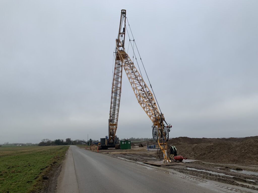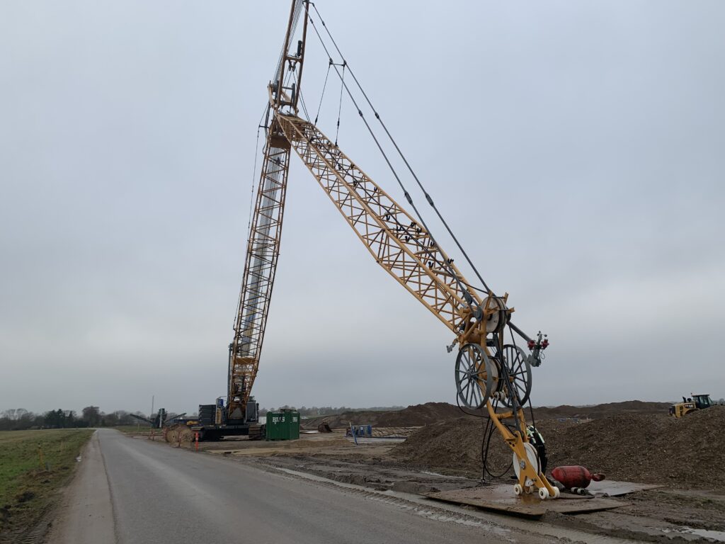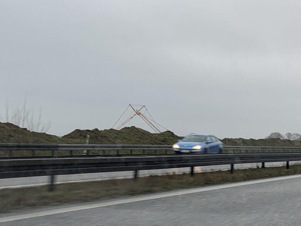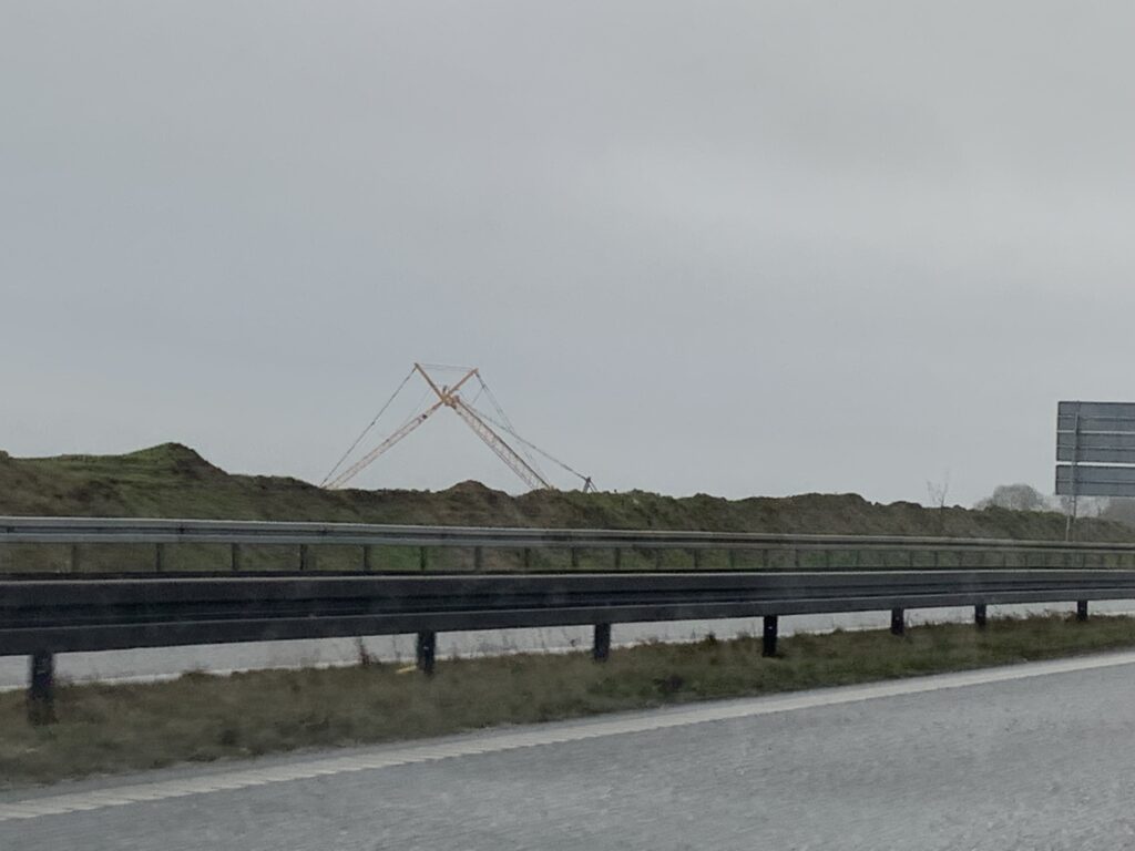 Ved Hedensted E45 er en knæk-kran blevet storm sikret inden at stormen “Malik” får rigtig fat på landet. Flere bilister undrer sig over det og tror den er knækket sammen, men “bare rolig” kranen er sikret for at den ikke skulle i knække i stormen.