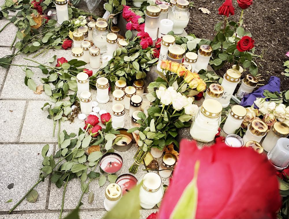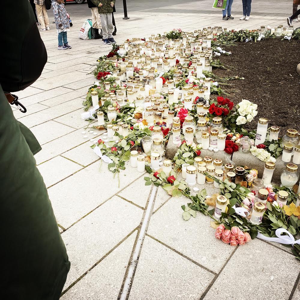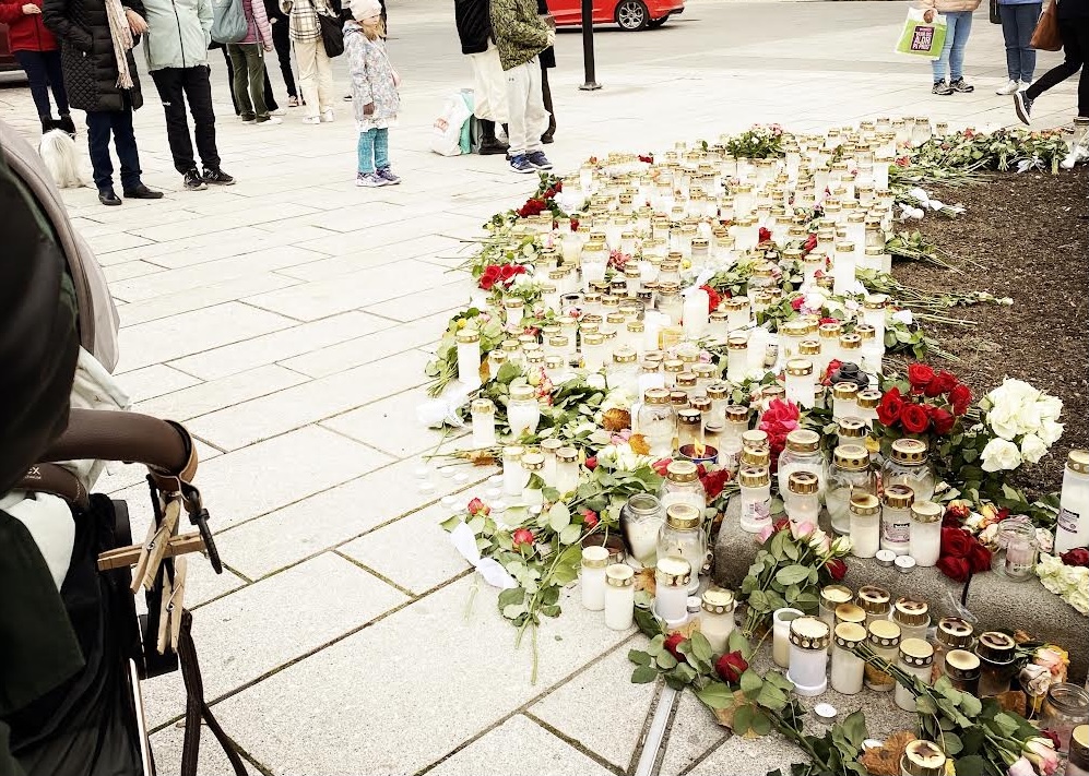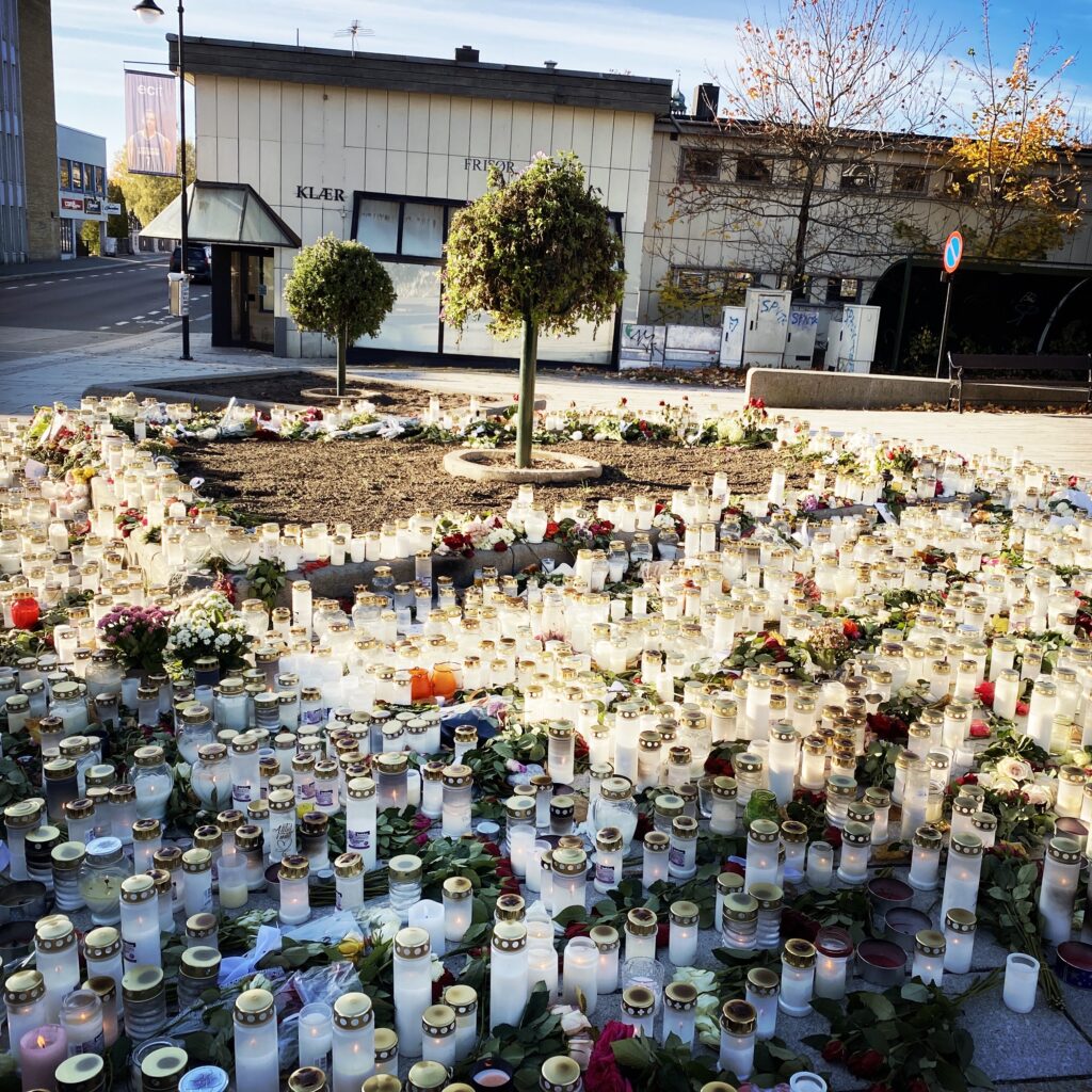 Flere hundrede har været forbi mindepladsen i byen for at sætte lys og blomster, samt for at mindes de 5 personer som blev dræbt da manden Espen Andersen Bråthen gik amok med bue og pil.