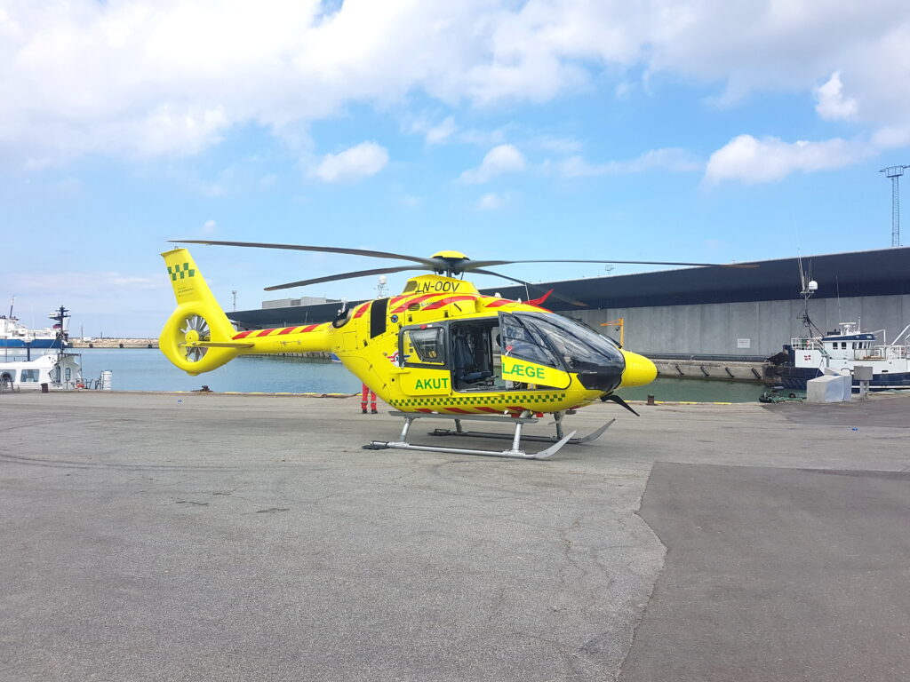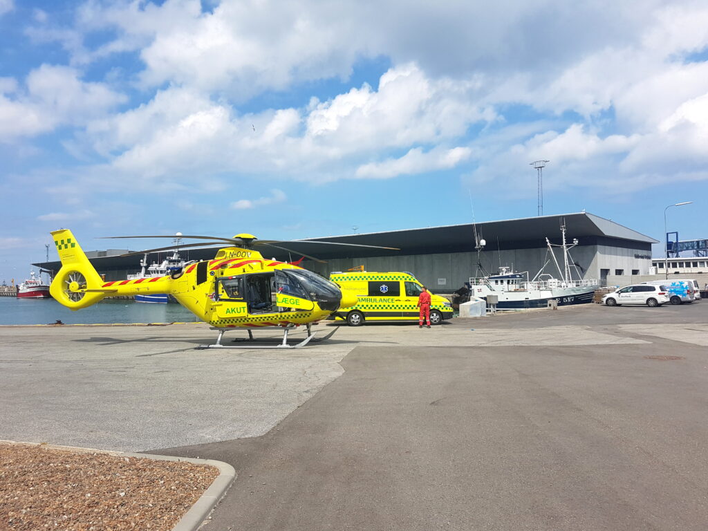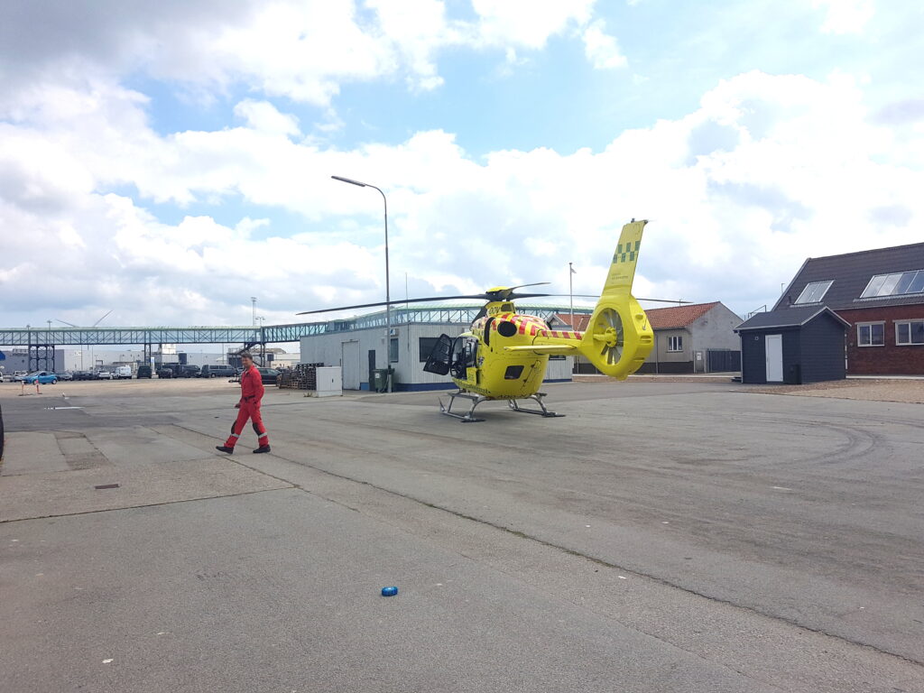 Lægehelikopter landet ved havn: Person fløjet til sygehuset