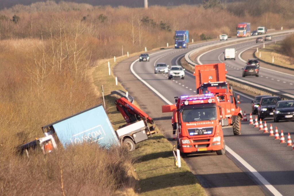 En lastbil er tirsdag eftermiddag kørt galt på Herningmotorvejen mellem Bording og Ikast Ø.