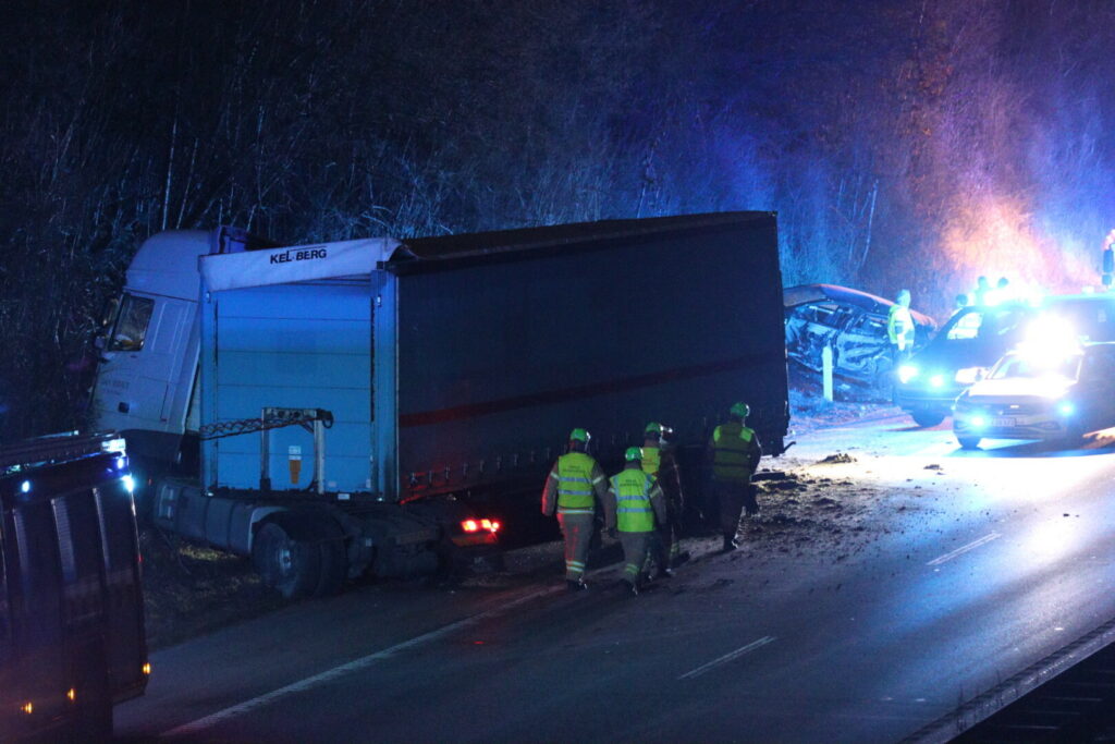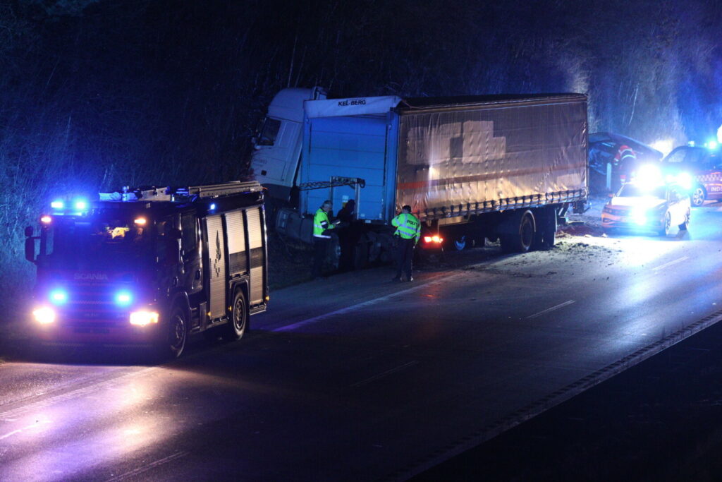 Natten til fredag er der sket et voldsomt færdelsuheld, mellem en personbil og en lastbil på motorvej E45 i sydgående retning, mellem 53 Skanderborg S og 54 Ejer Bavnehøj.