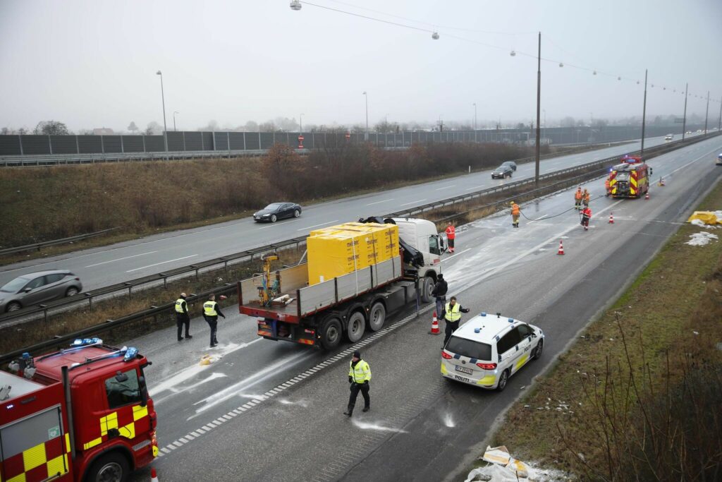 En lastbilulykke spærrer onsdag morgen dele af Holbækmotorvejen ved afkørsel 1.