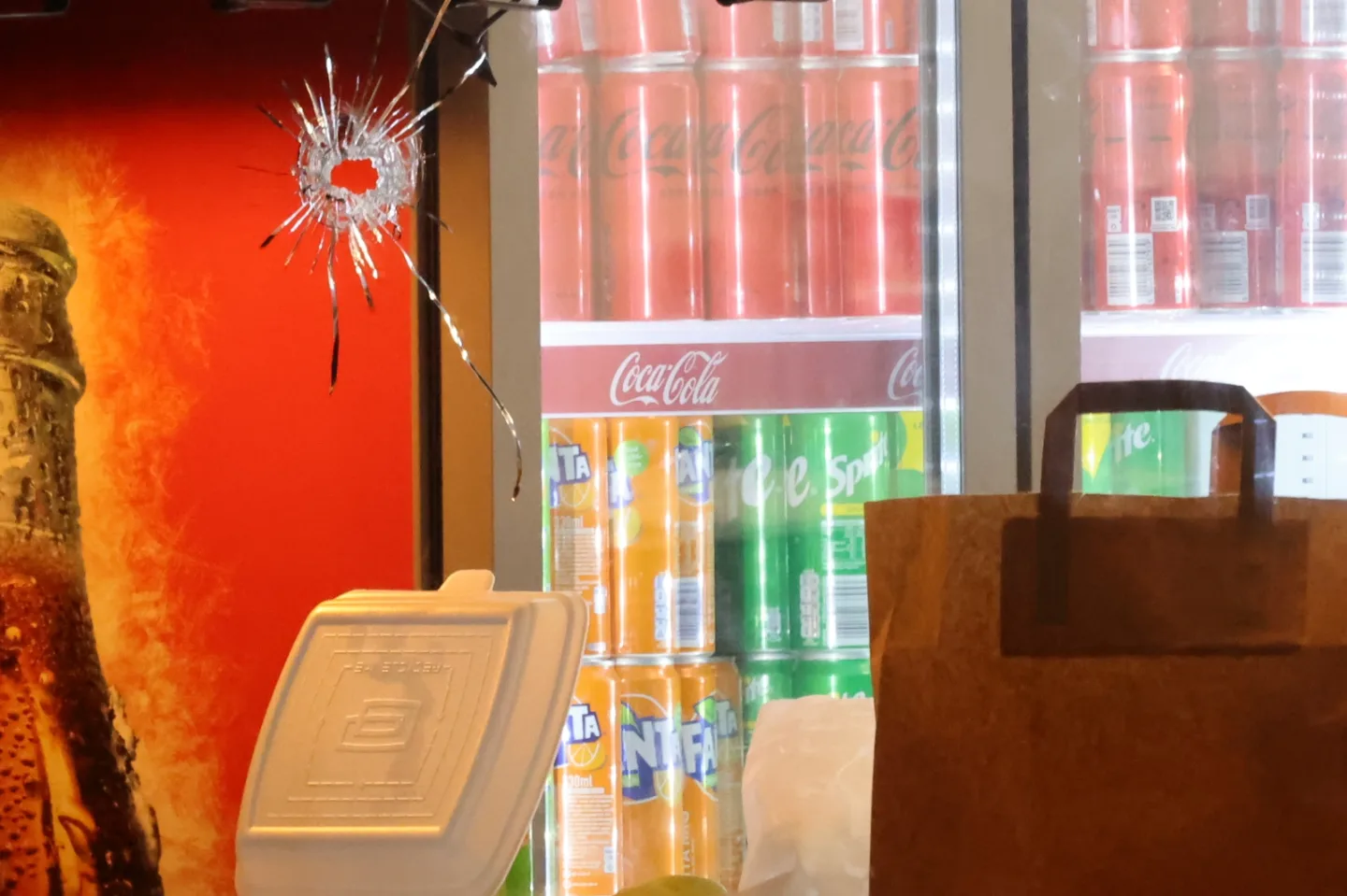 Den anden person blev ramt i foden, og den tredje person ramt af skud var lam fra taljen og ned. Flere af skuddene blev affyret gennem vinduet på en restaurant.