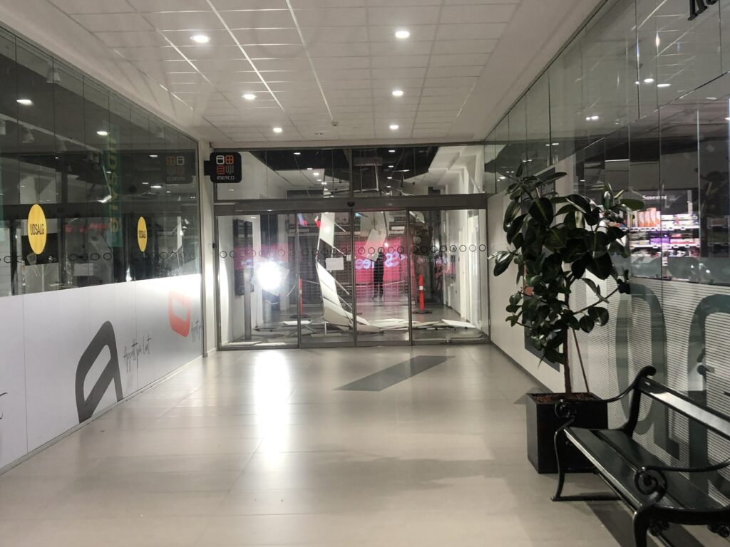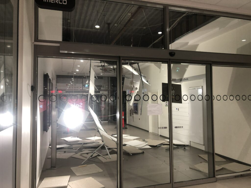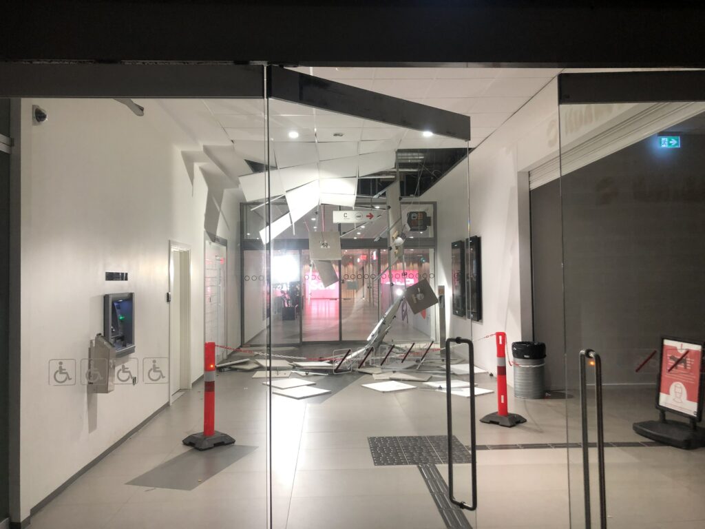 Politiet samt beredskab er lørdag kaldt ud til Kennedy Arkaden, hvor et loft er faldet ned i en mellem gang.