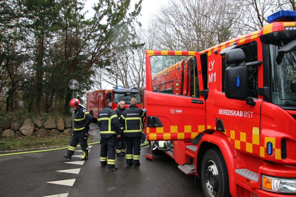 Fredag eftermiddag ved 15-tiden er brandvæsenet til stede i krydset mellem Nybrovej og Mariebjergvej i Gentofte.