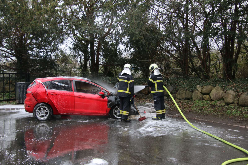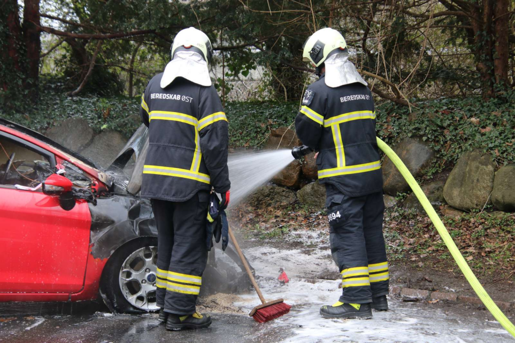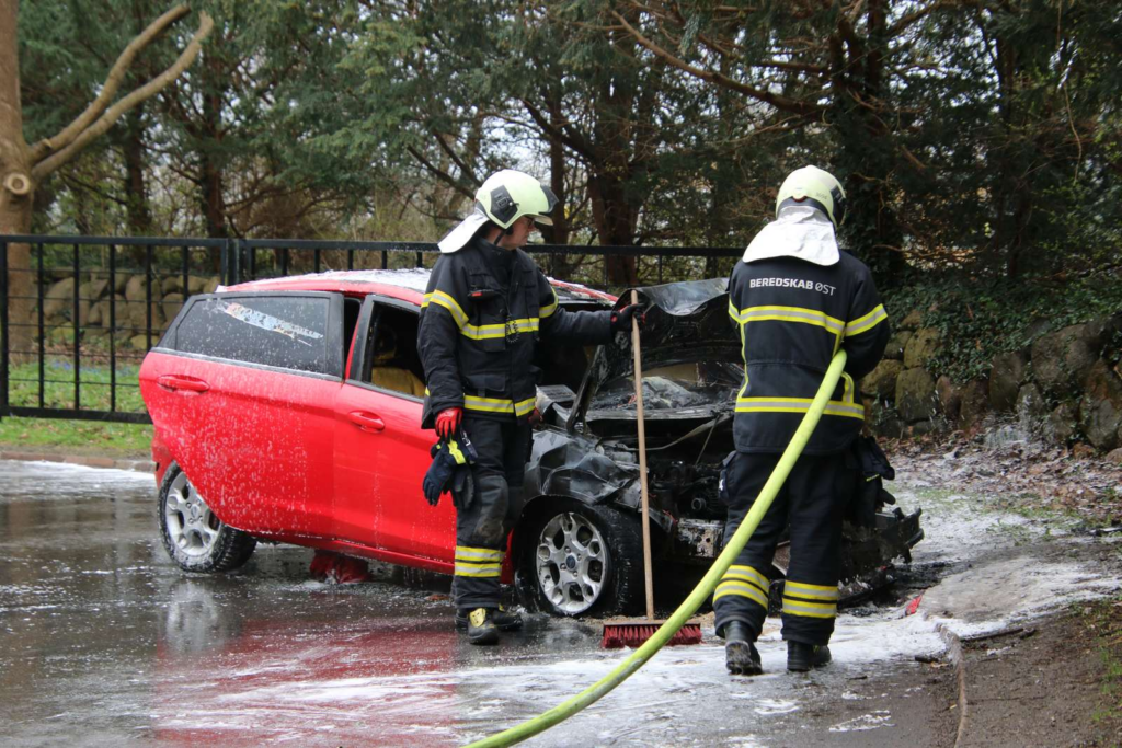 Ved ankomst til stedet kunne brandvæsenet konstatere tydelige flammer i en rød personbil og påbegyndte derfor hurtigt slukningen.