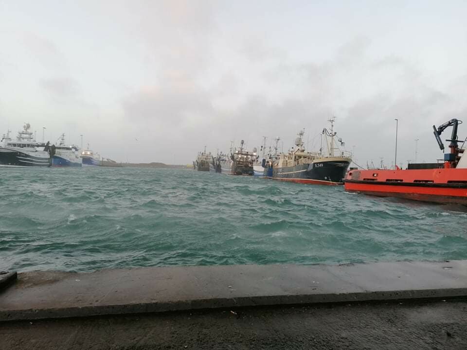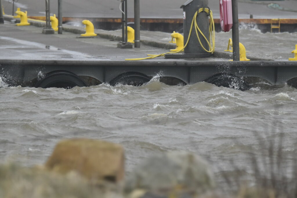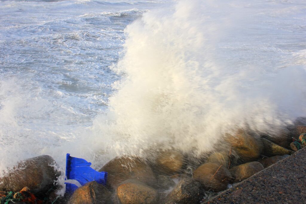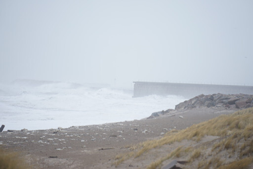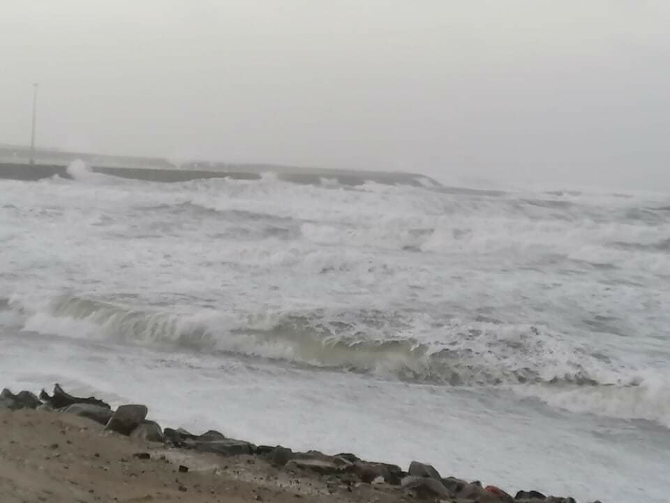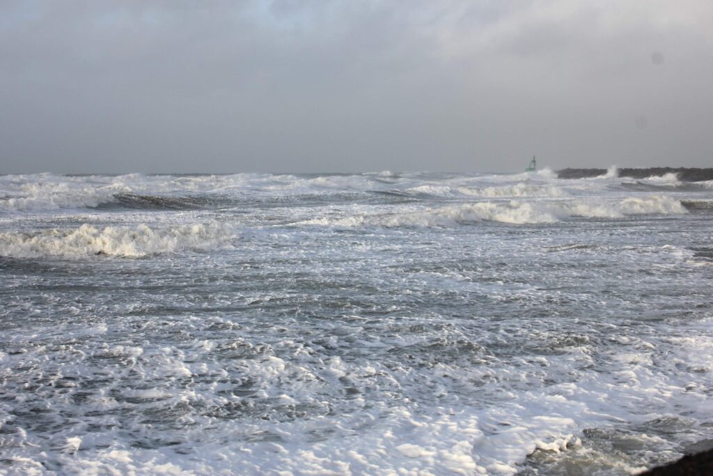 Vandet pisker ind over molerne og folk bør holde sig fra farebare områder.