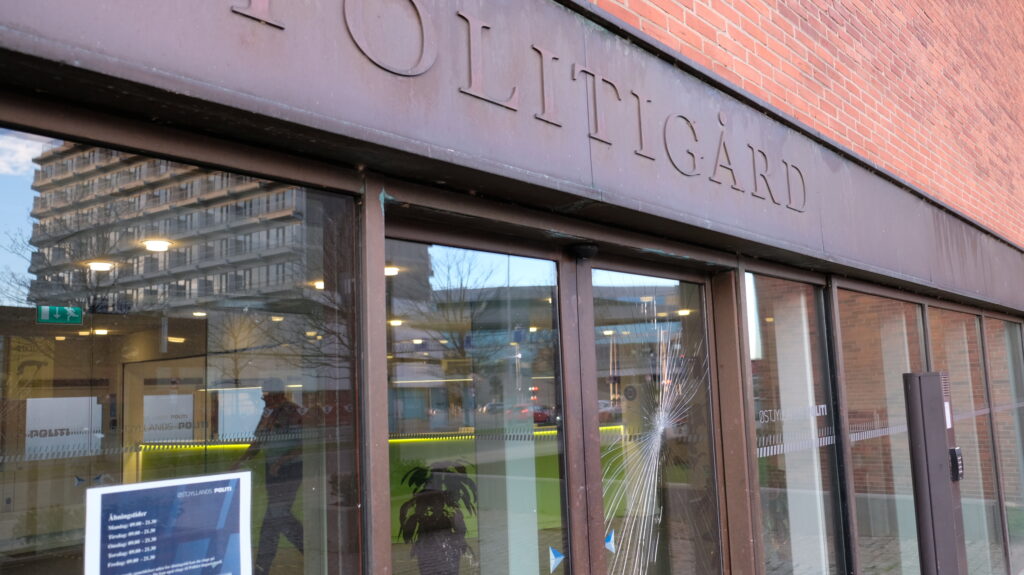 Den 46-årige mand kastede nemlig brosten på vinduespartierne og indgangsdørene ved politigården klokken 00.36.