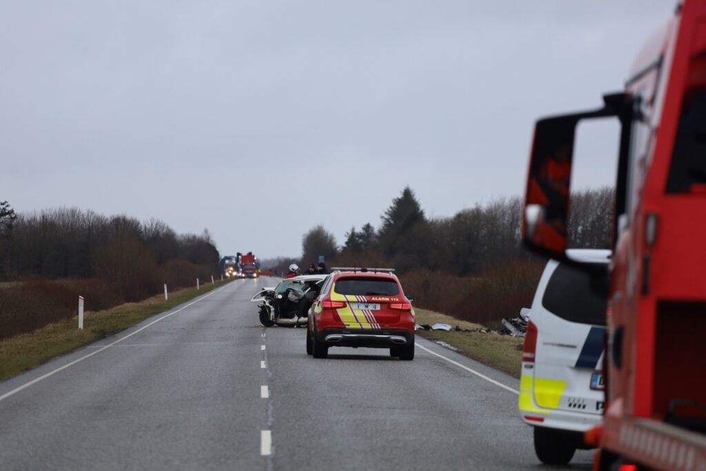 En mand har mistet livet i en alvorlig trafikulykke på en landevej. Samtidig er en kvinde blevet hastet på hospitalet i kritisk tilstand