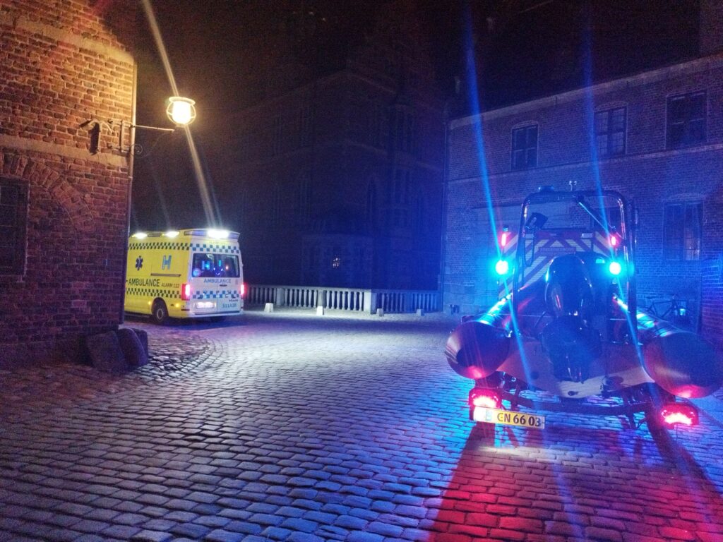 Brandvæsenet er sammen med ambulancetjenesten søndag aften til stede ved Frederiksborg Slot i Hillerød, hvor en person er faldet i vandet.
