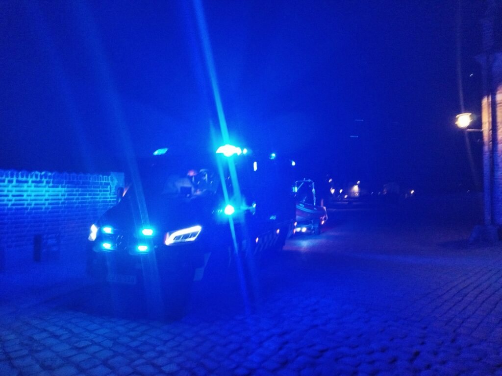 Brandvæsenet er rykket ud med en redningsbåd, mens en enkelt ambulance er på stedet.