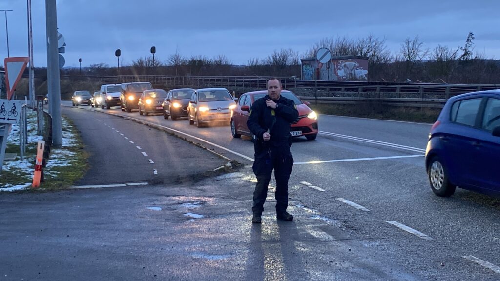 Ifølge politiet er der tale om en mand, der har forladt sin bil på broen, da den var gået i stykker under kørslen.