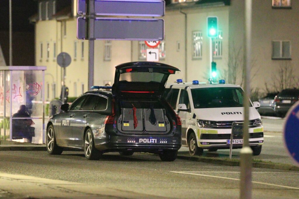 Almindelige patruljevogne samt hundepatruljer er til stede på adressen.