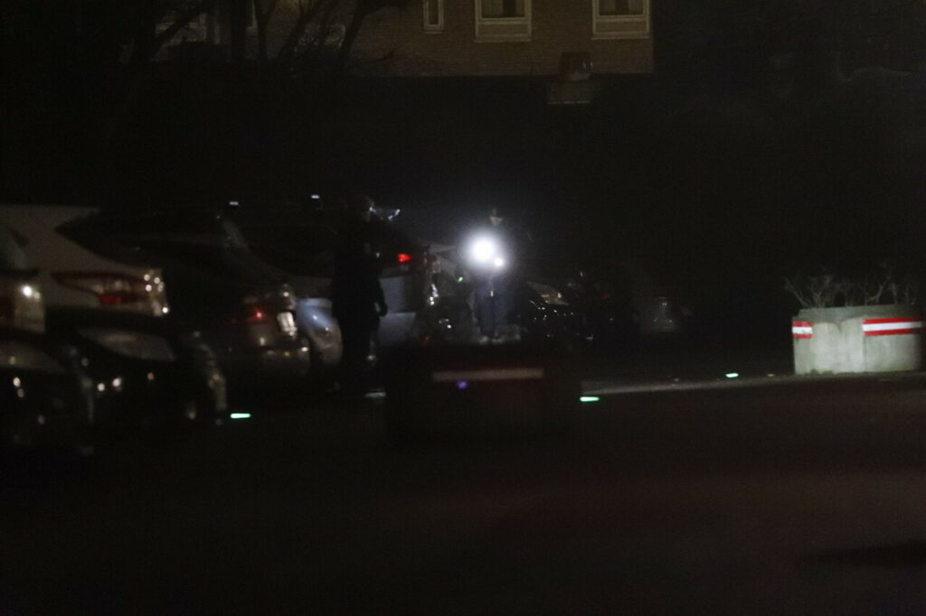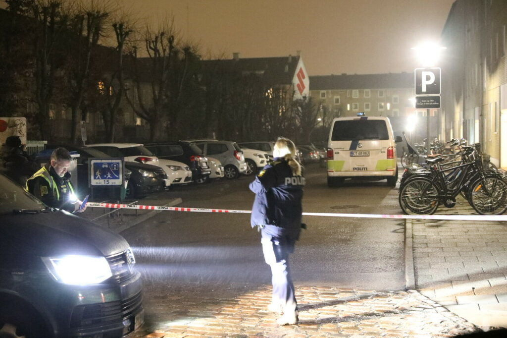 Adskillige vidner har omkring klokken 00.30 hørt op imod 7 skud blive affyret på en parkeringsplads i området.