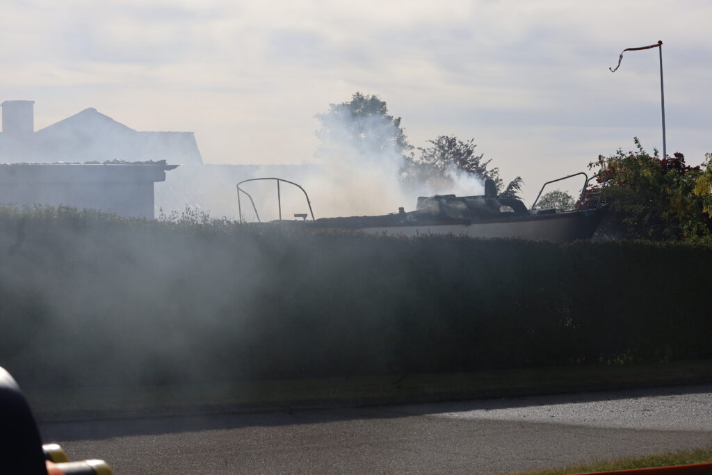 “Haderslev: Brand i garage ved Starup, som udvikler en del røg. Idet der bl.a. befinder sig en glasfiberbåd i garagen, anbefales det at lukke vinduer og ventilationsanlæg, såfremt man kan lugte røgen/vagtchefen.”