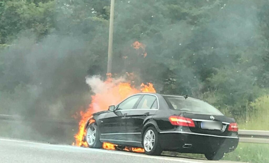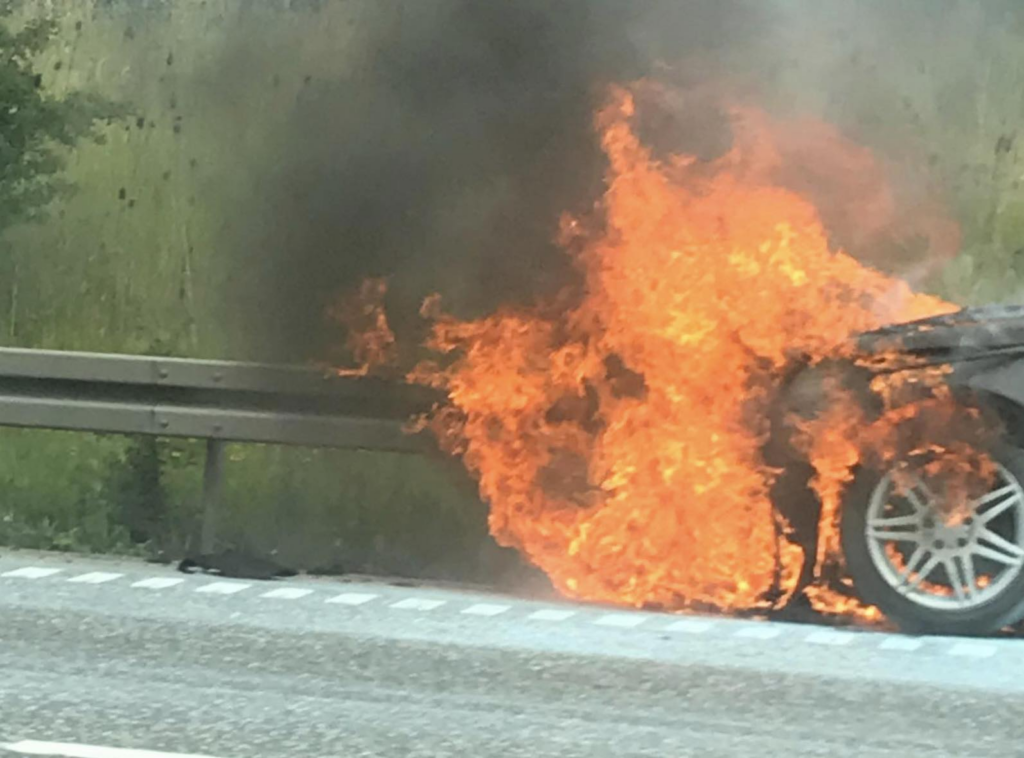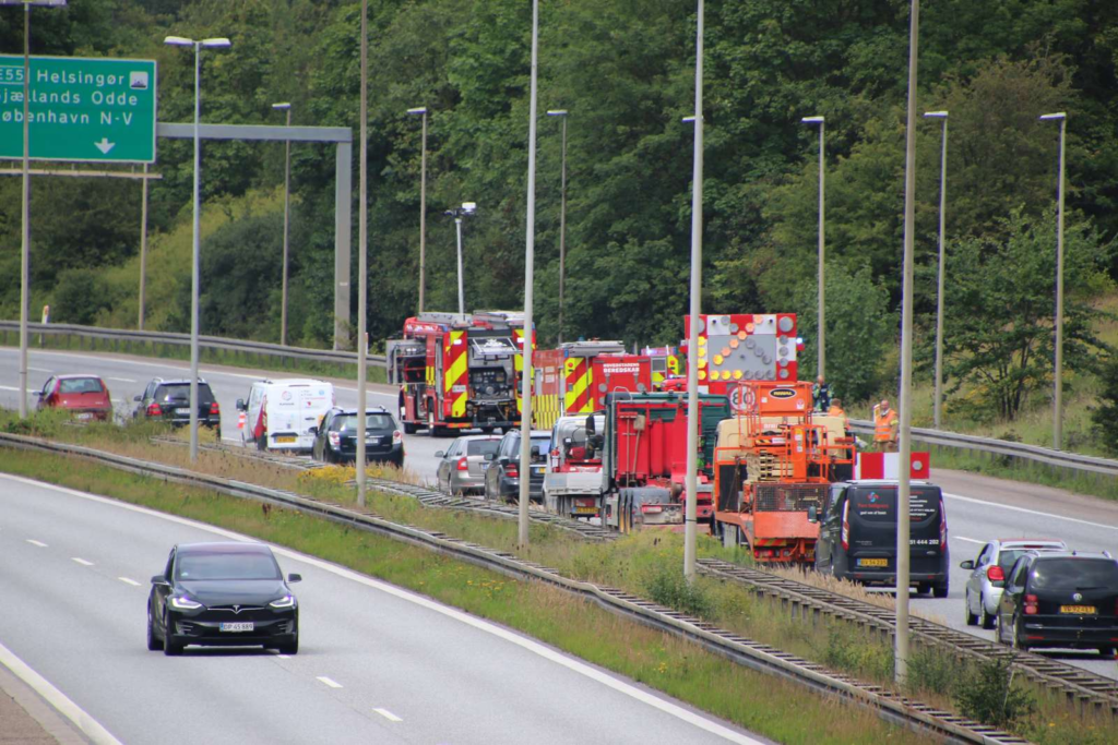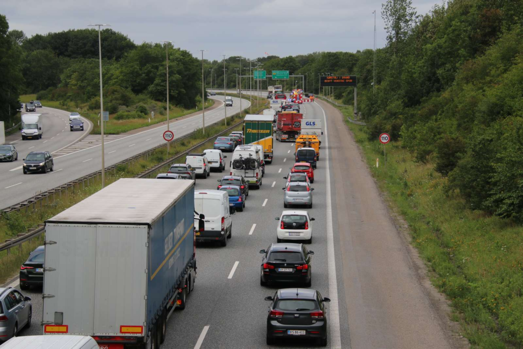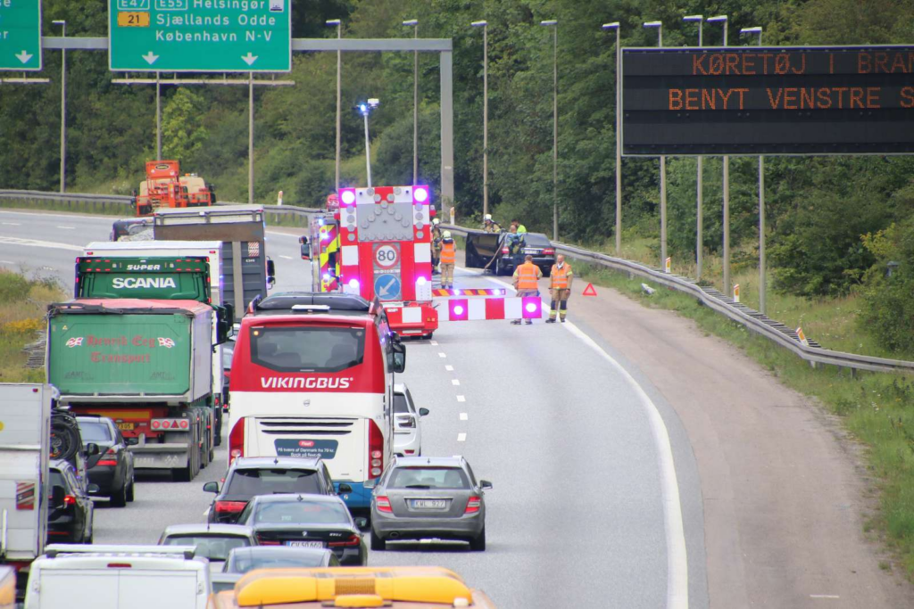 Massiv kø på motorvej efter bilbrand