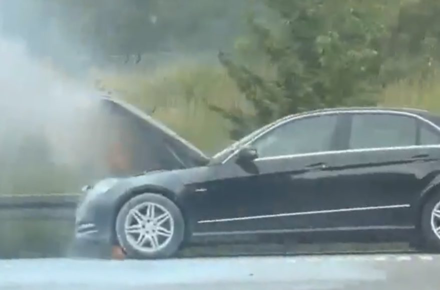 Brandvæsenet og politiet er torsdag eftermiddag rykket ud til Amagermotorvejen, hvor en bil står i brand