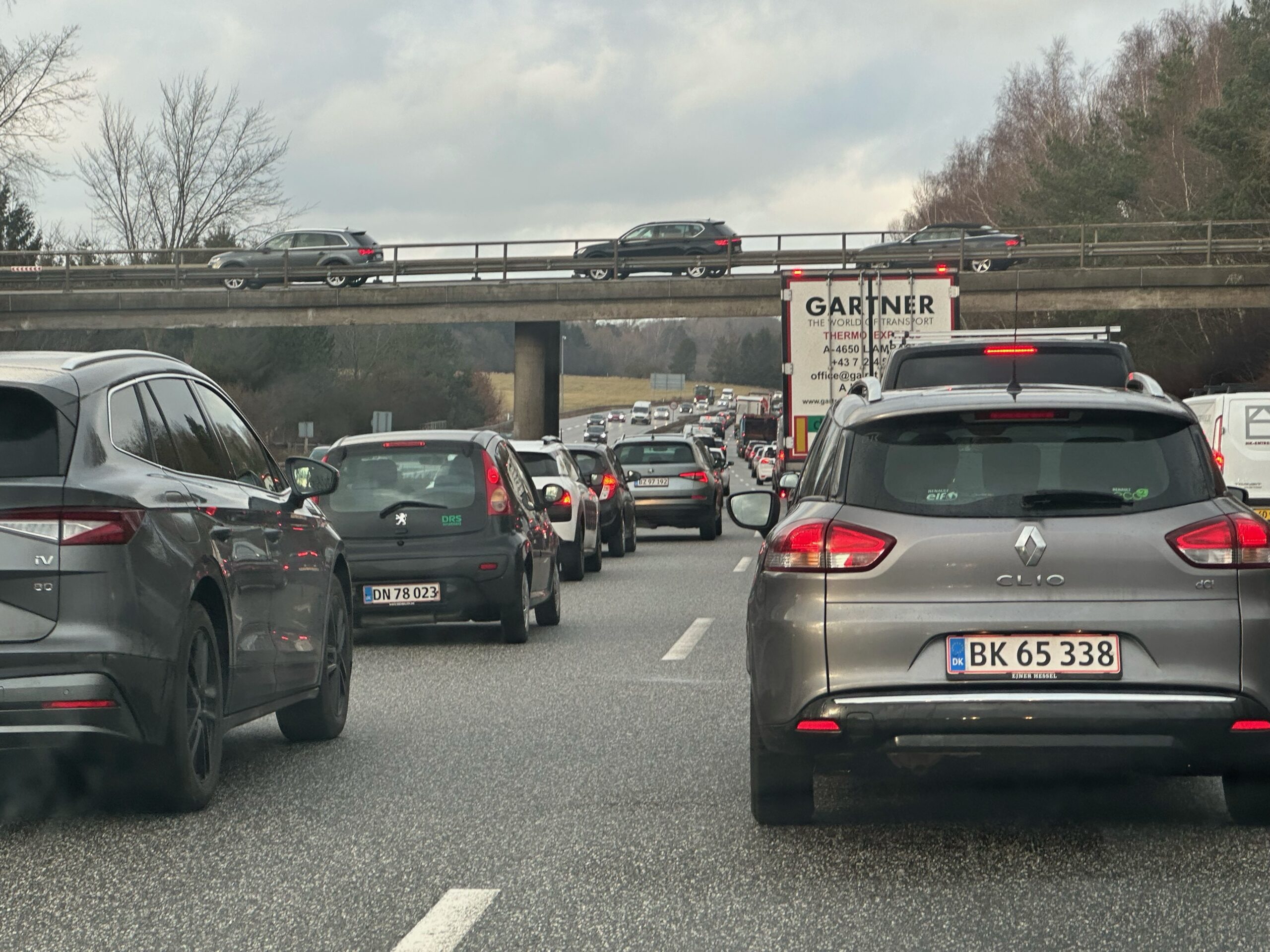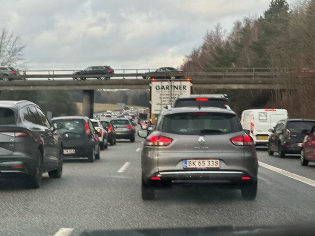 Bilister møder klokken 15.50 allerede køen ved Sandbjerg.
