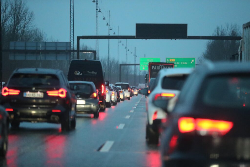 Bilister rammer køen kort efter Brøndby Strand, og den fortsætter helt op til Herlev.