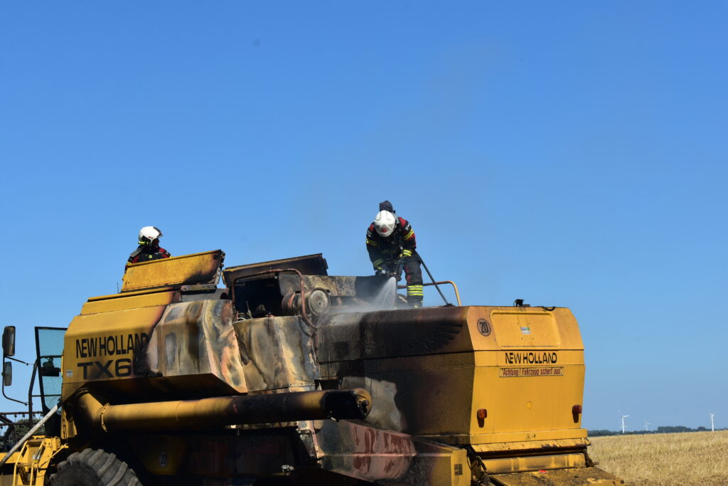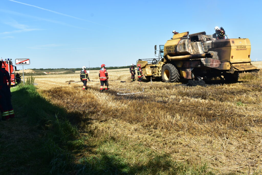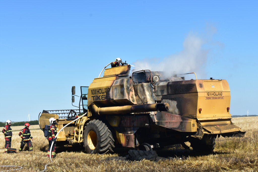 Fredag eftermiddag omkring klokken 14.45 fik brandvæsenet en anmeldelse af, at der var ild i en mejetærsker, der stod på en mark på Frammerslevvej i Spøttrup, der ligger cirka 10 kilometer nordvest for Skive.